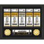 Commemorate the Pittsburgh Penguins' five Stanley Cup championships with this framed display, featuring a commemorative banner for each season (with a fact card matted above each banner), and two minted coins. The coins each measure 39 mm in diameter; one is a Pittsburgh Penguins Stanley Cup champions bronze coin and the other is a Penguins commemorative team coin.