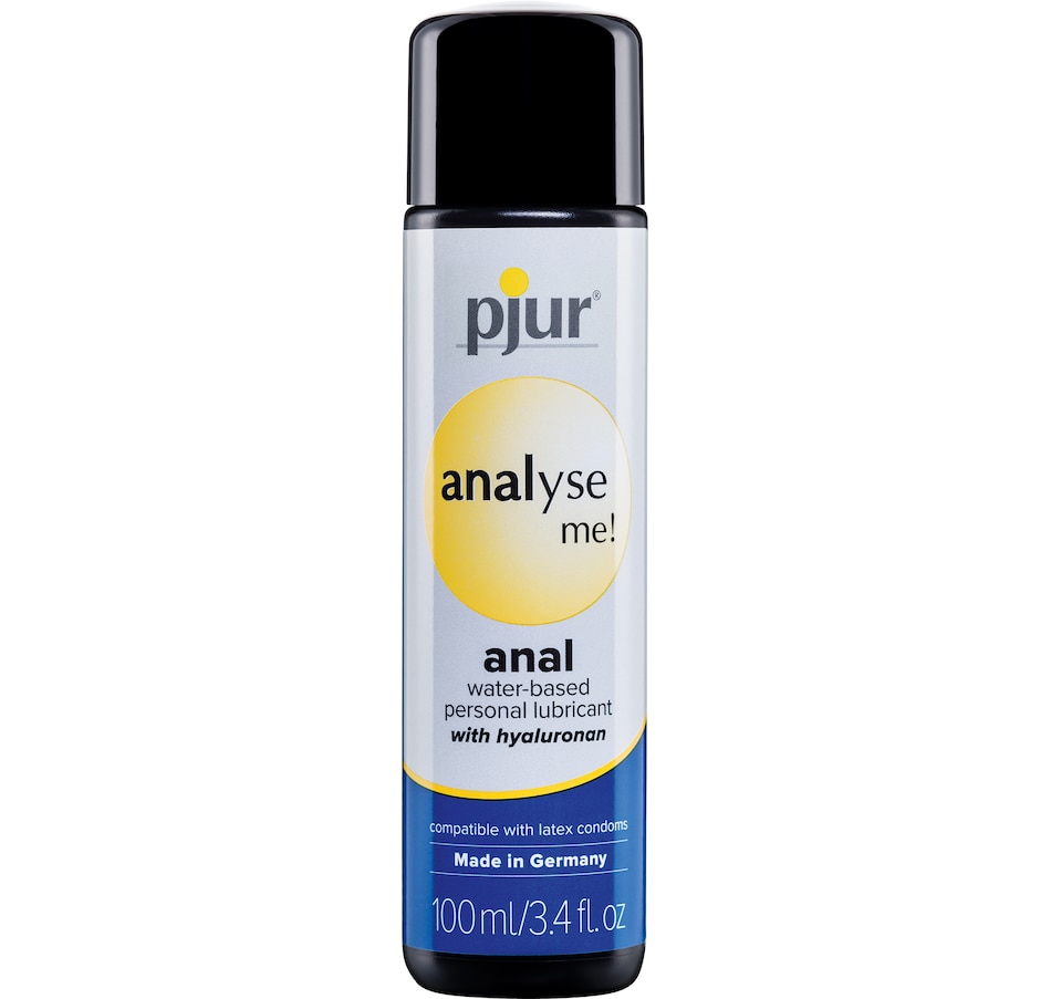 Pjur Analyse Me! Water-based personal lubricant for anal sex. Enriched with hyaluron that moisturizes and provides long lasting lubrication. Compatible with latex condoms and sex toys.