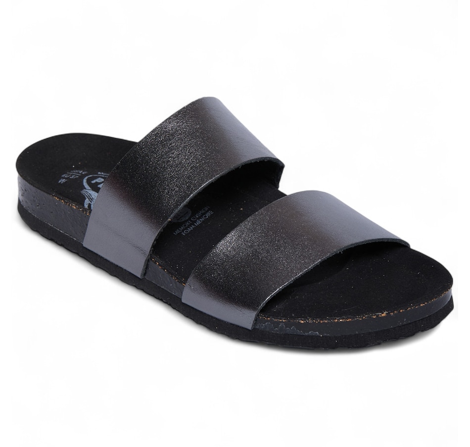 Featuring a sleek two-strap silhouette, the Brynn sandal offers a modern and feminine touch while delivering signature Plakton support and durability. It is made with a step-in style with dual band design.