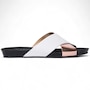 The Faro sandal blends minimalist elegance with a touch of sophistication. The smooth, crisscrossing straps create a striking contrast of textures, whether in soft suede, metallic leather, or printed leather-like finishes, offering a refined yet versatile look.