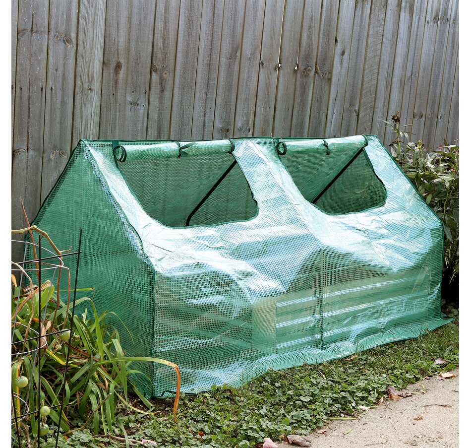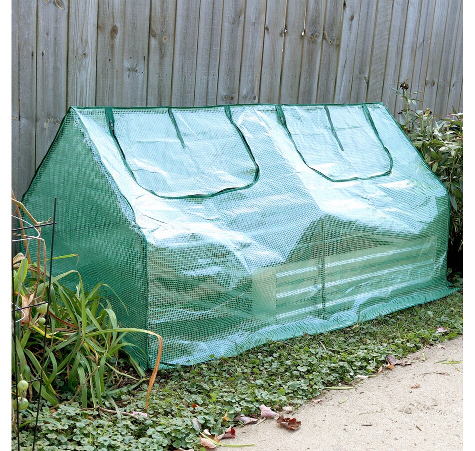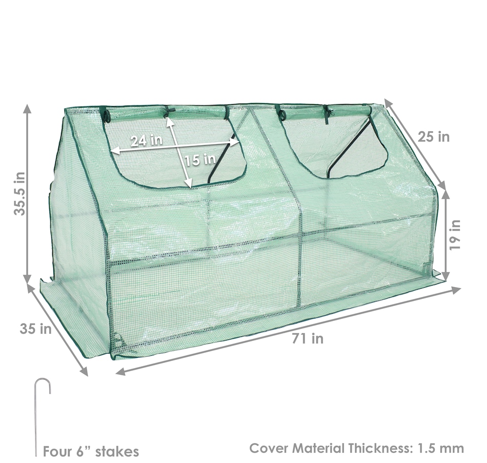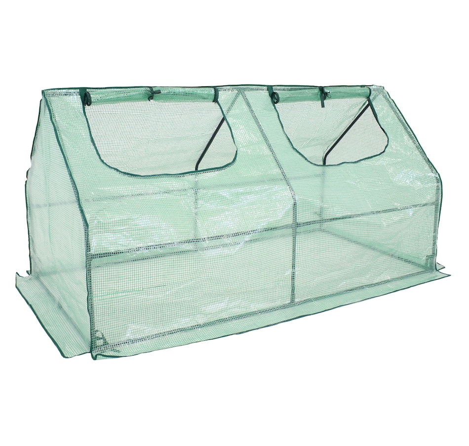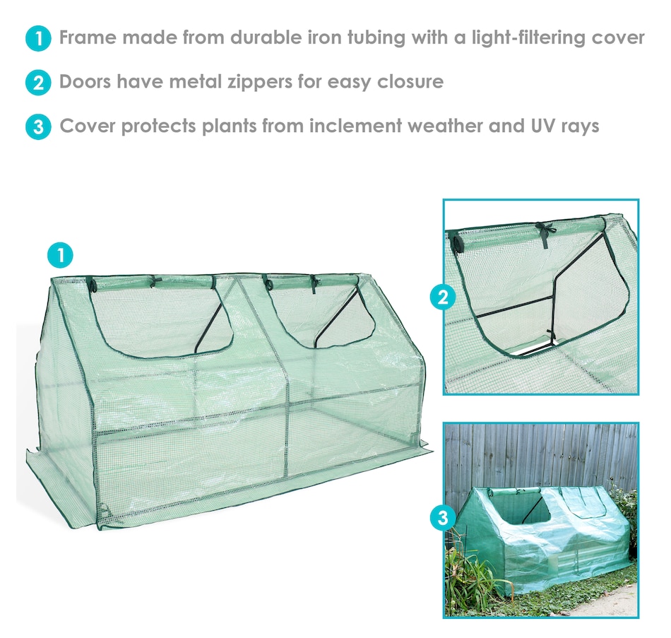 Protect plants from harsh weather and create just the right growing environment at home in the garden, patio, deck, yard, or other landscaping area with this easy-to-use mini greenhouse. With a frame made from strong iron tubing and a durable polyethylene covering coated with a UV ray protective finish, this portable seedling cloche greenhouse is great for growing vegetables, fruits, plants, and flowers. The cover protects plants from UV rays and inclement weather like frost, excessive heat, and moisture. In addition, this mini greenhouse is transparent to ensure plants receive the right amount of sunlight. Zippered doors allow for controlled airflow in and out of the greenhouse and allows easy access to plants. This mini greenhouse can be used in a variety of places outdoors to create and nurture any dream garden wherever desired. Use this greenhouse over garden beds to have a successful growing season year-round!