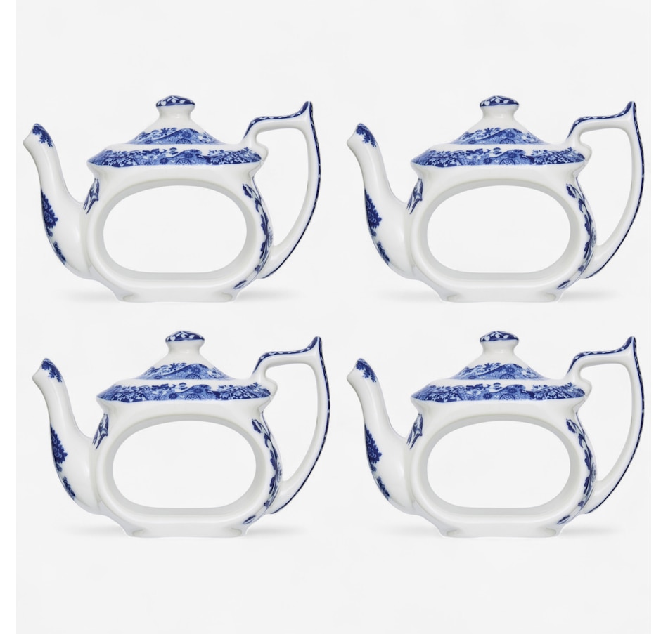 Spill some tea at the table with these whimsical Teapot Napkin Rings. Inspired by the Blue Italian teapot, this set of four napkin rings dresses up any special occasion table setting or afternoon tea. We also love them as a place card holder or favour.