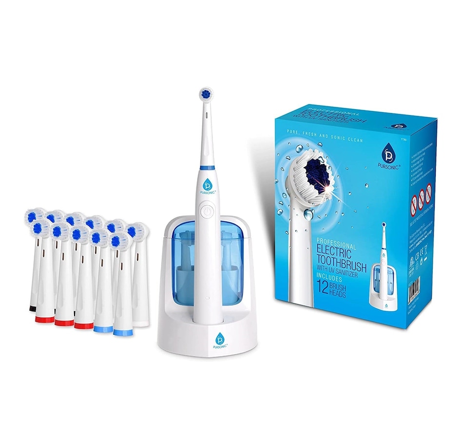 Pursonic RET200 Oscillating electric Rechargeable Toothbrush With 12 brush headFeatures:UV SANITIZER: UV clean technology helps kill up to 99.9% of germs on the brush heads, and keeps your toothbrush germ -free between brushing. ADVANCED ELECTRIC CLEANING TECHNOLOGY: 8,800 Oscillations per minute, removes more plaque than a regular manual toothbrush3 CLEANING MODES- provides powerful cleaning action, soft cleaning and massage mode. Helping to keep your teeth stronger and healthier. 30 SECOND INTERVAL ALERT SYSTEM- built in interval timer helps you brush each quadrant of your mouth evenly. Inductive charging with LED indicator, extra long usage time. Comes with BONUS: 12 Brush heads, Model Number: RET200