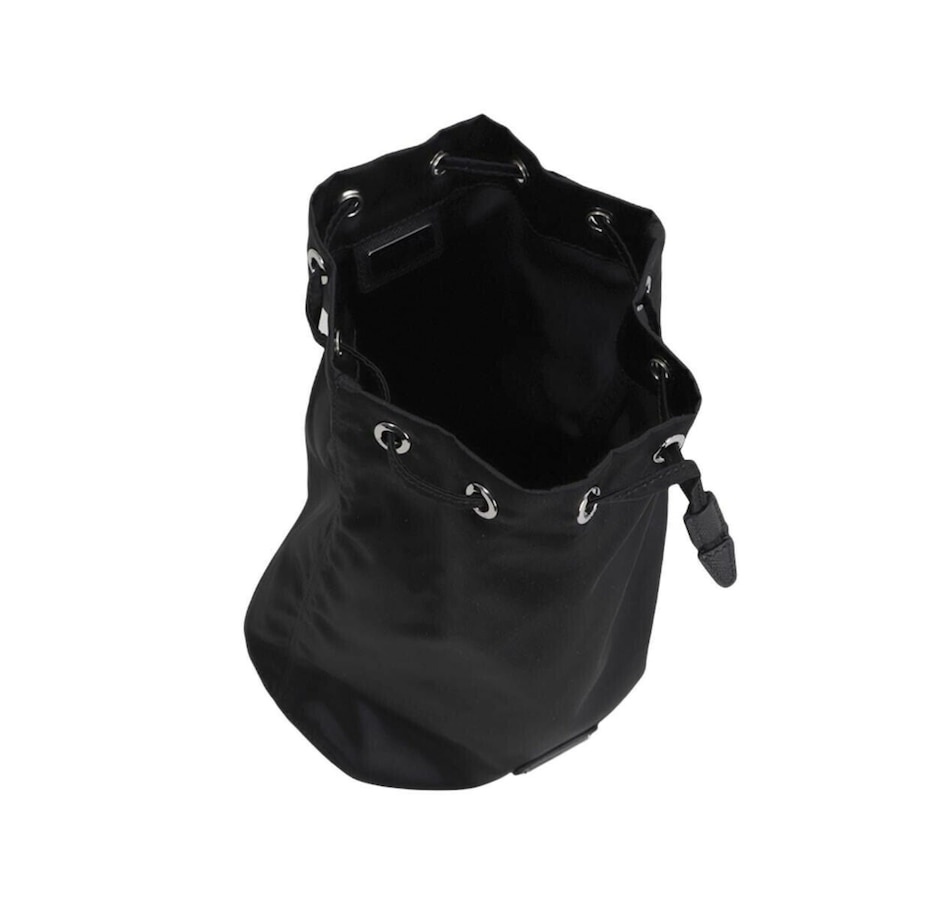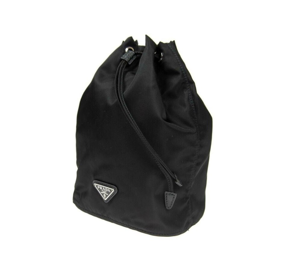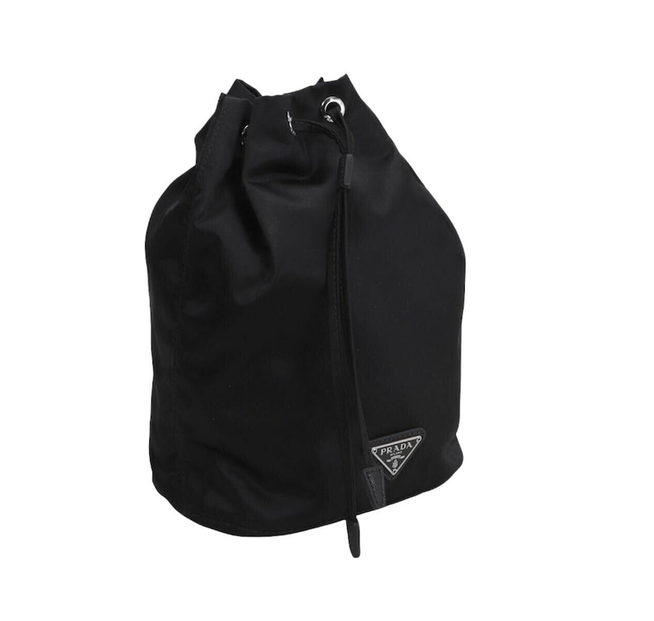 Prada has long understood that nylon is not a compromise, it is a statement. This Tessuto bucket bag from the Necessaire collection brings that philosophy into sharp focus, pairing the houses signature lightweight nylon with a clean drawstring silhouette that feels both utilitarian and thoroughly refined. The enameled metal triangle logo sits at the front with the kind of quiet authority only Prada can pull off. Compact, lightweight, and unmistakably Italian, this is the kind of piece that works as hard as you do.