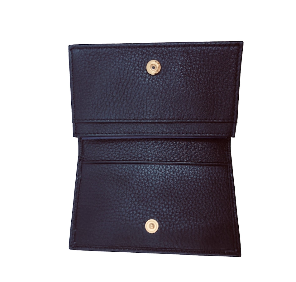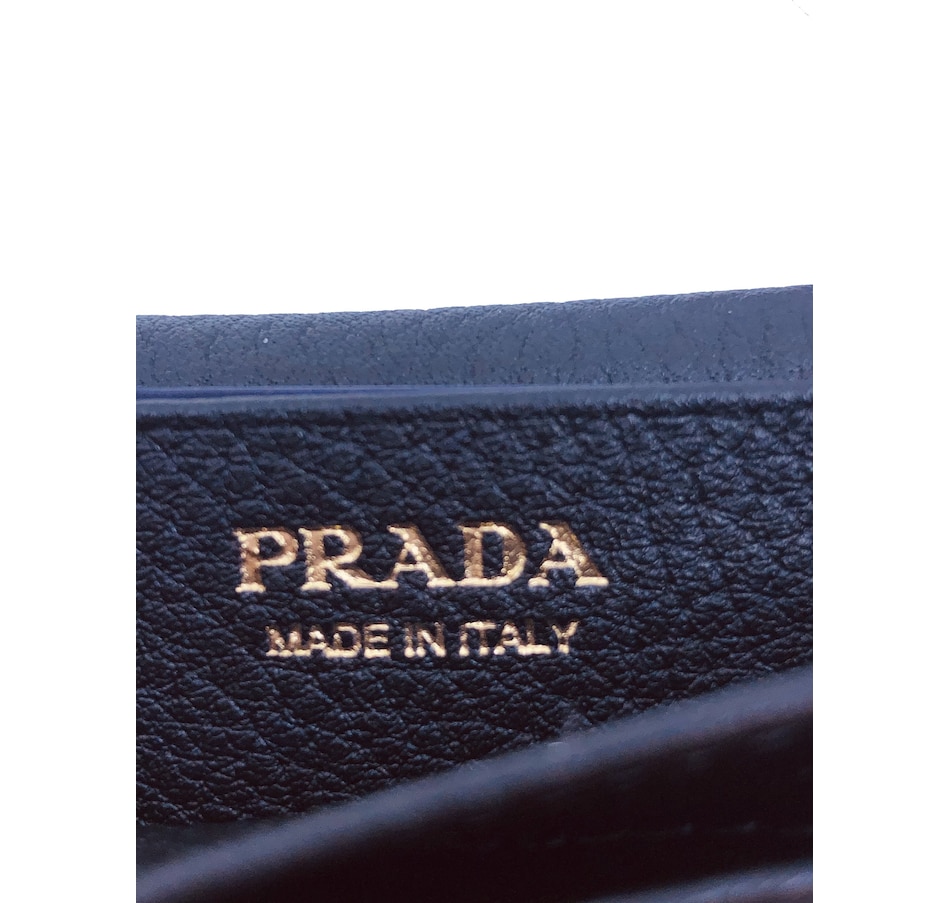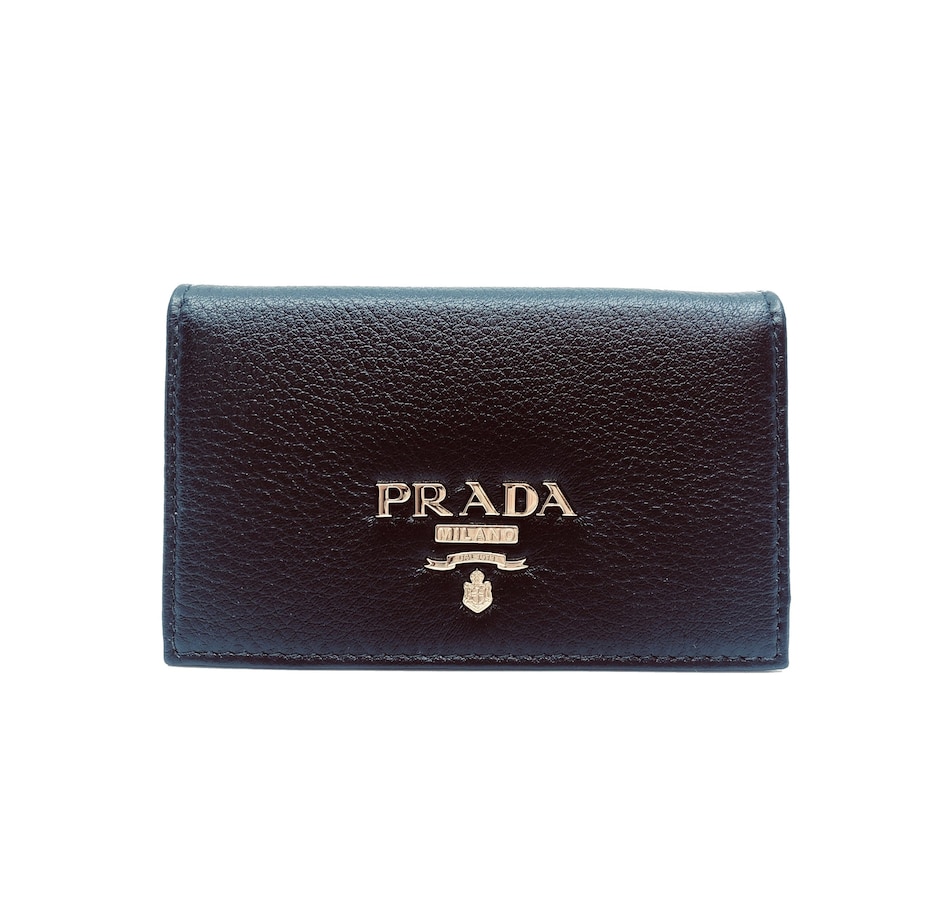 This Prada vitello grain black card holder is absolutely adorable and is the perfect size for your personal information. The pebbled soft leather is sure be the classic accessory you need. The gold Prada Paris logo looks amazing with the simple black leather. Includes authenticity cards and Prada box.
