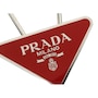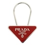 The Prada Enameled Metal Key Ring in Red and Gold is a bold and stylish purse charm that exudes luxury and contemporary flair. Featuring a striking red enamel finish, this key ring is adorned with Prada's iconic triangle logo in a gleaming gold tone, creating a stunning visual contrast that captures attention.