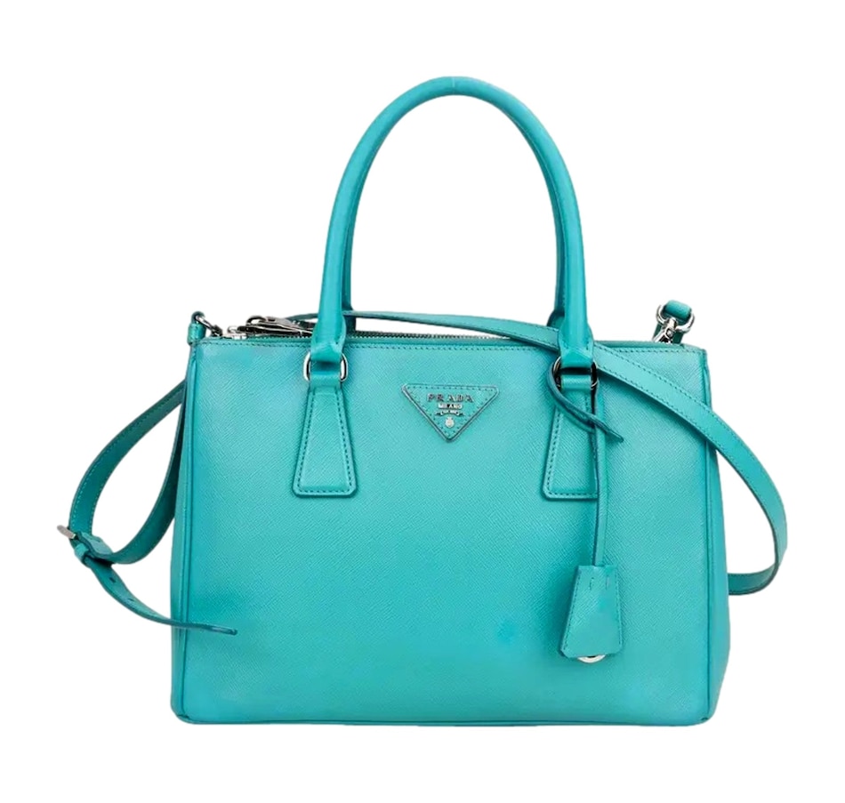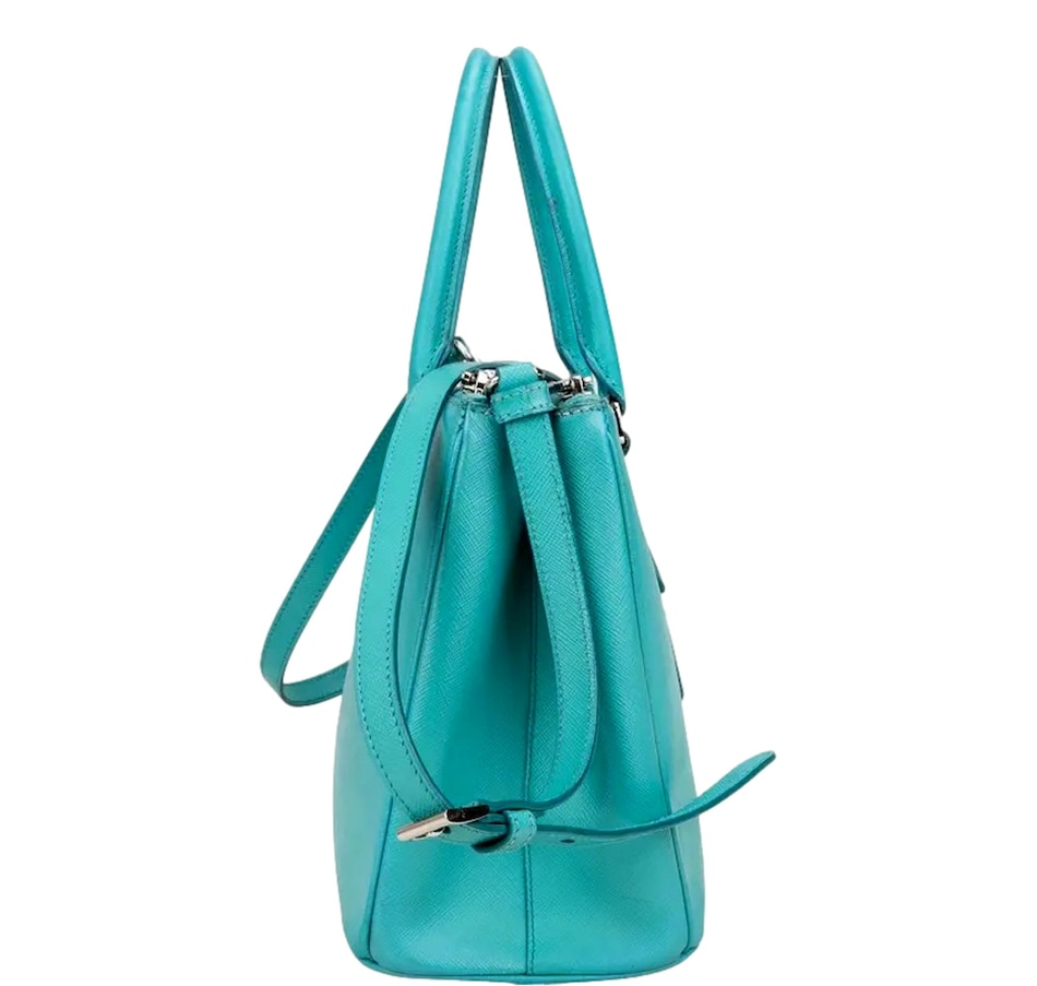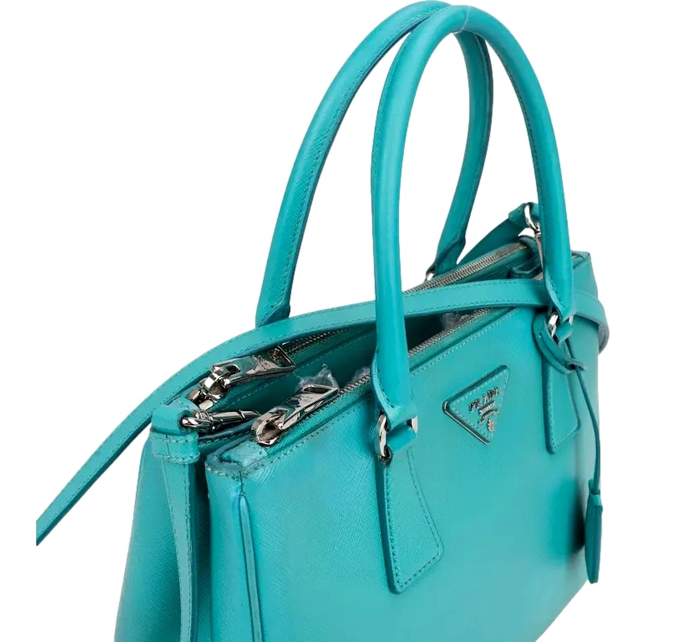 Bright and refined, the Prada Galleria Small Tote in Giada Teal brings a vibrant touch to timeless elegance. Crafted from signature Saffiano Lux leather, it features a structured silhouette, dual zip compartments, and polished silver-tone hardware. A standout piece that combines iconic Prada style with everyday sophistication.