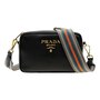 The Prada Milano Black Leather Crossbody Bag with Web Stripe Strap is a striking fusion of luxury and contemporary style. Crafted from supple black leather, this bag boasts a sleek, minimalist silhouette that exudes sophistication. The leather is both smooth and durable, offering a timeless aesthetic that's perfect for any occasion.