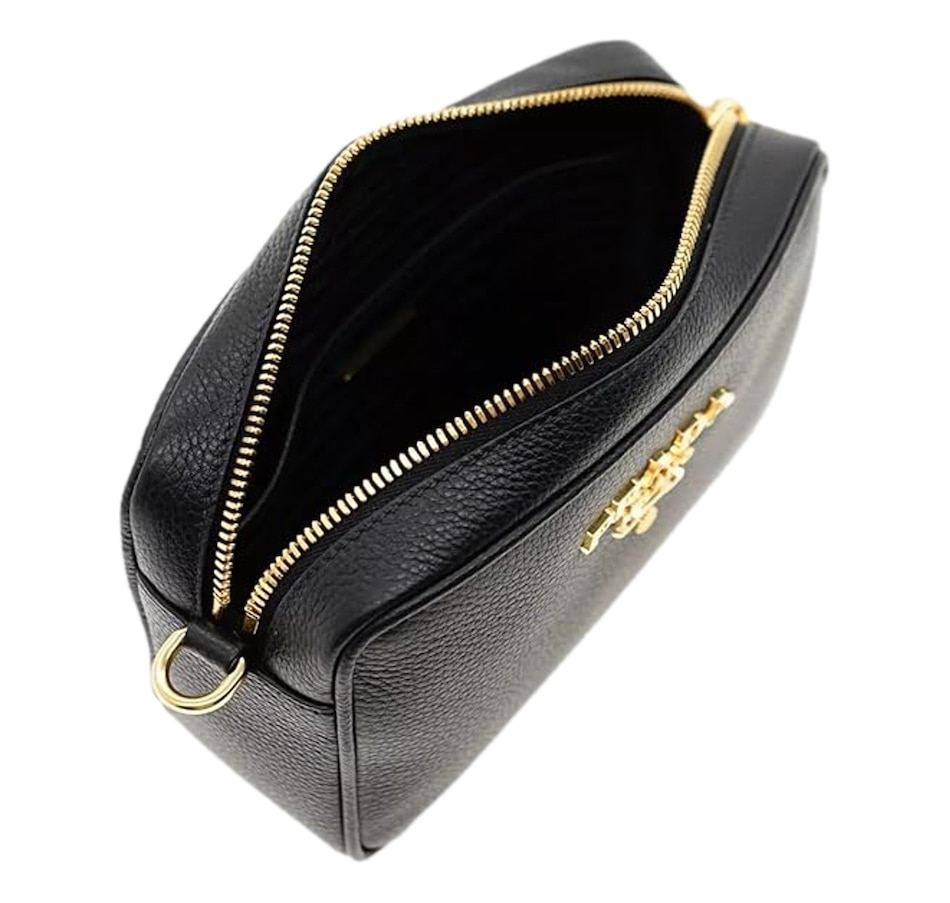 The bag’s compact yet functional interior is designed to keep your essentials organized and easily accessible. A top zip closure ensures the security of your belongings, while the Prada logo subtly embossed on the front adds a signature touch of refinement.