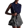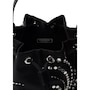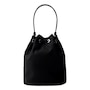 The drawstring closure, accented with refined leather details, opens to reveal a surprisingly spacious interior—perfect for essentials carried with style and ease. A delicate shoulder strap offers versatile wear, allowing this piece to transition effortlessly from day to night, from understated chic to refined glamour.