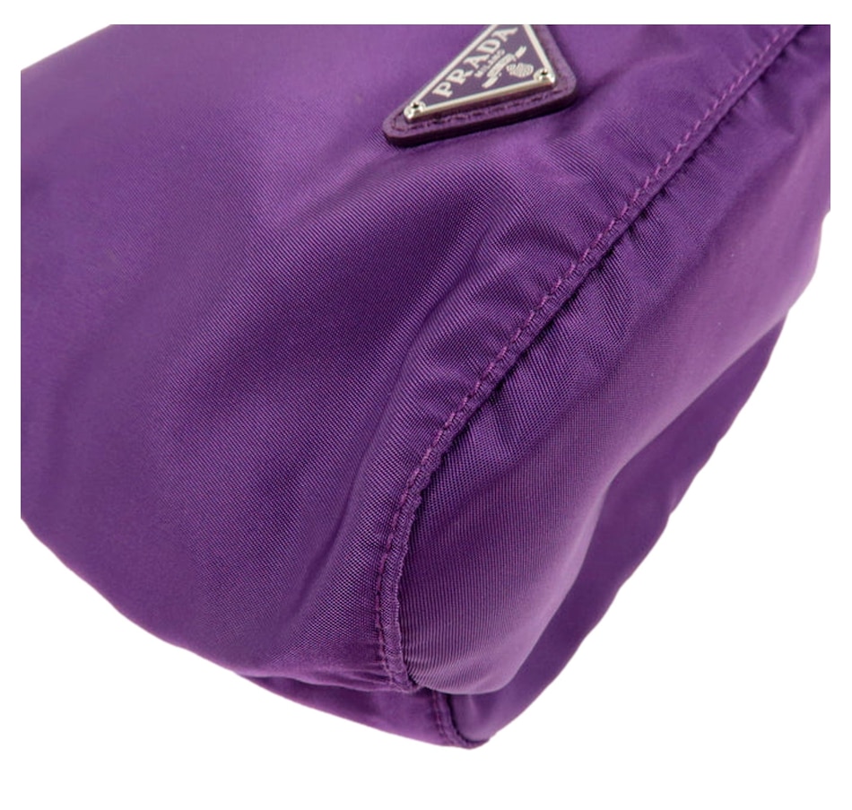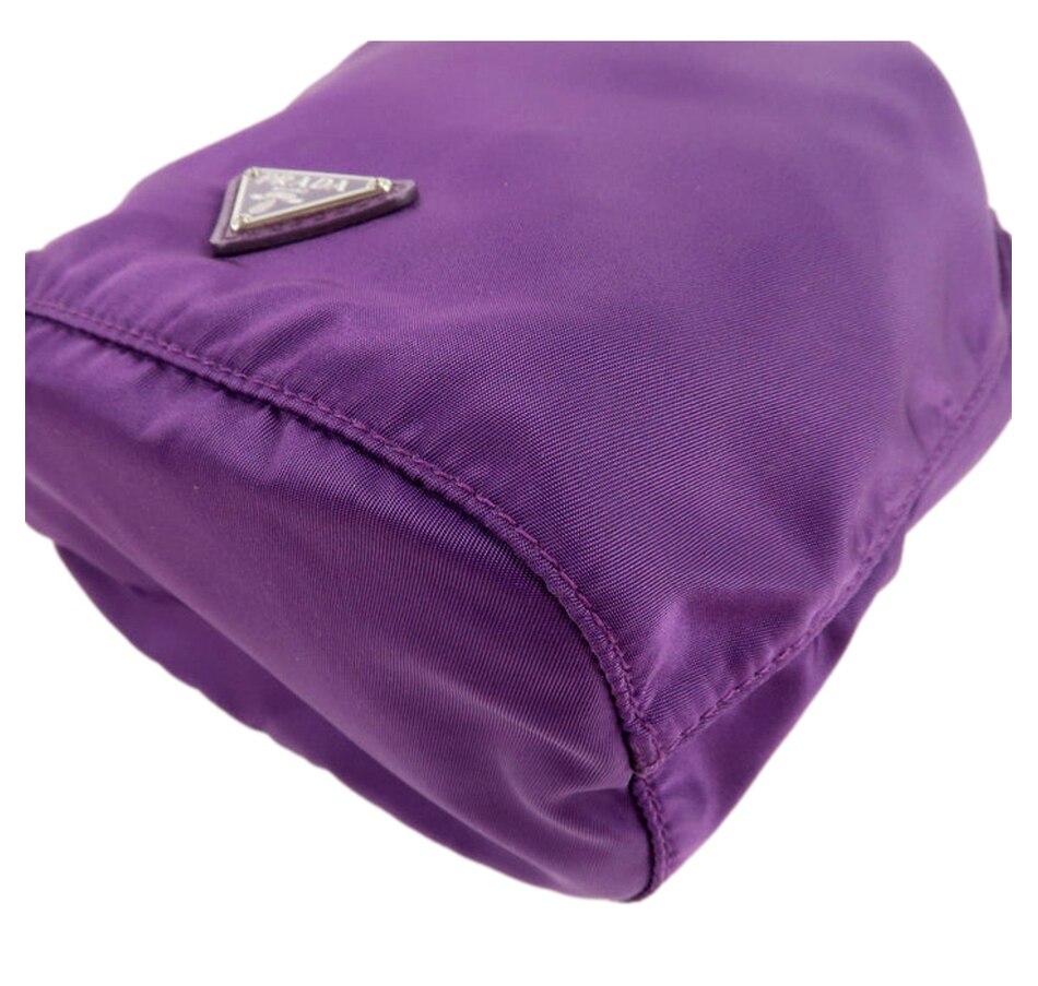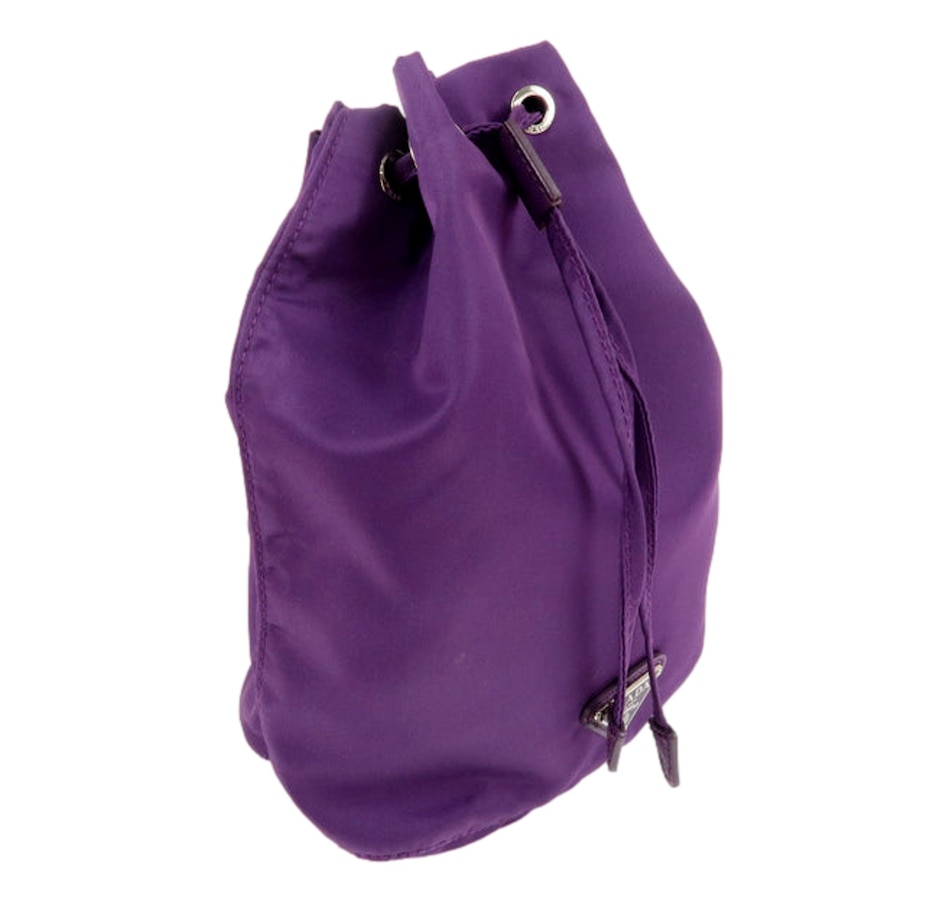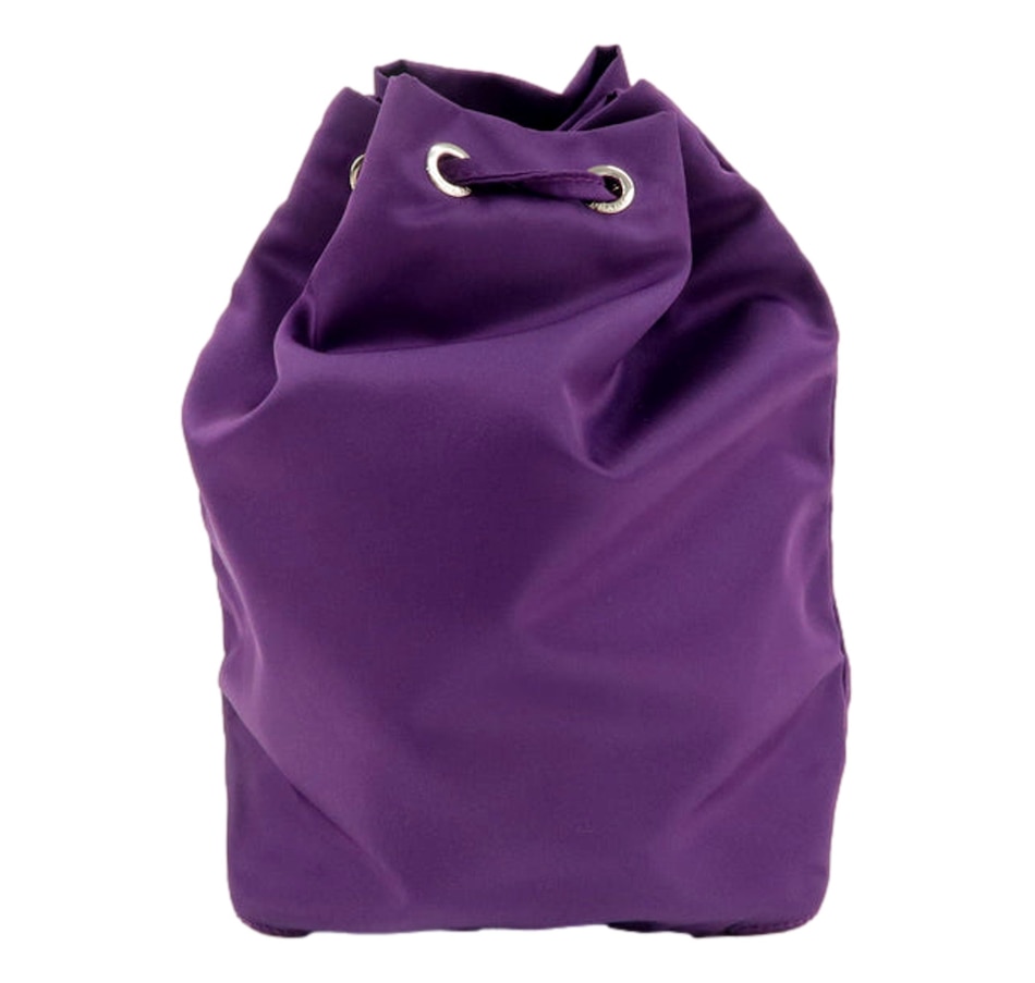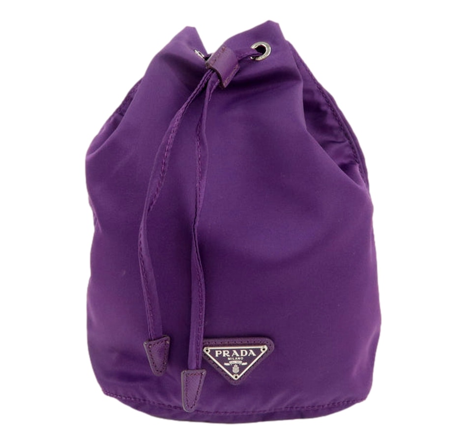 The Prada UVA Purple Tessuto Nylon Triangle Logo Drawstring Bucket Bag is a bold and stylish accessory that combines functionality with the luxury craftsmanship for which Prada is renowned. Made from durable and lightweight Tessuto nylon in a vibrant UVA purple shade, this bucket bag is both eye-catching and practical. The iconic triangular Prada logo plaque is prominently displayed on the front, adding a touch of sophistication and brand recognition.