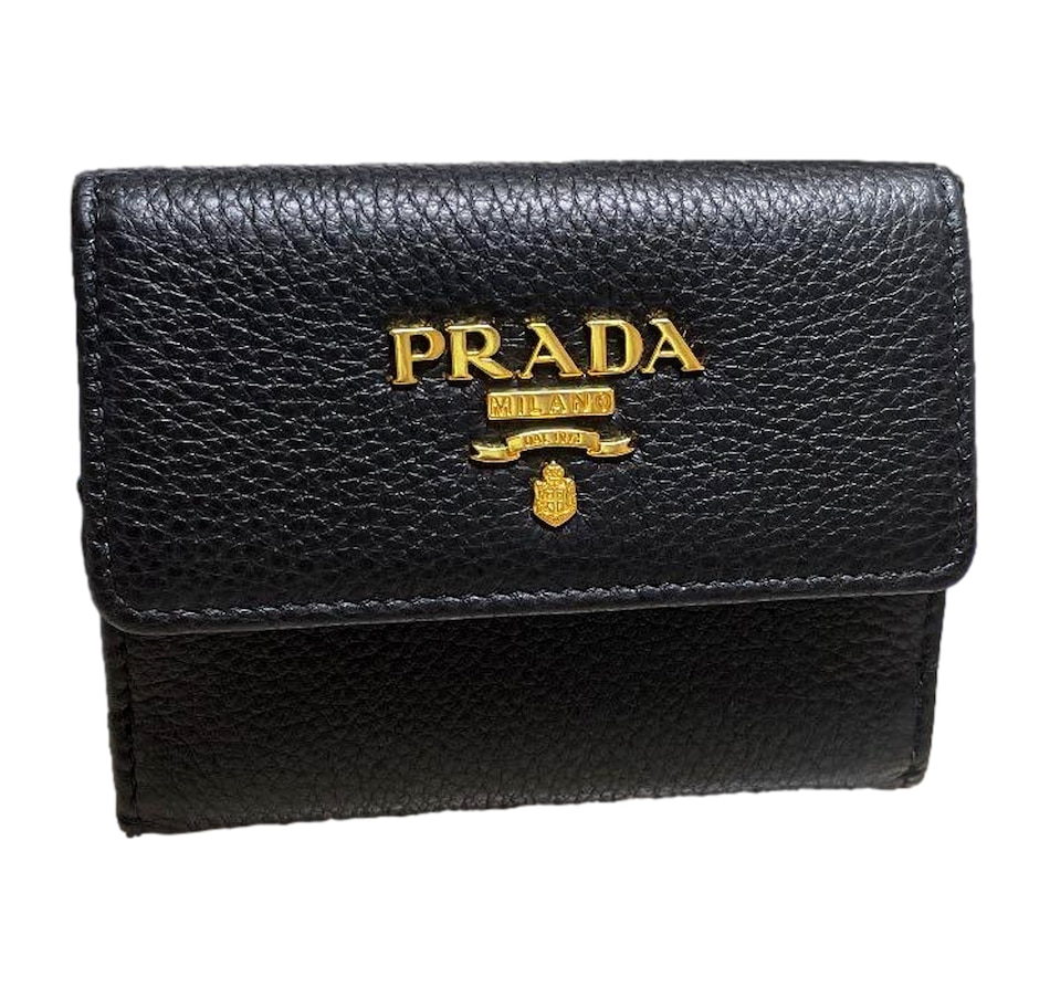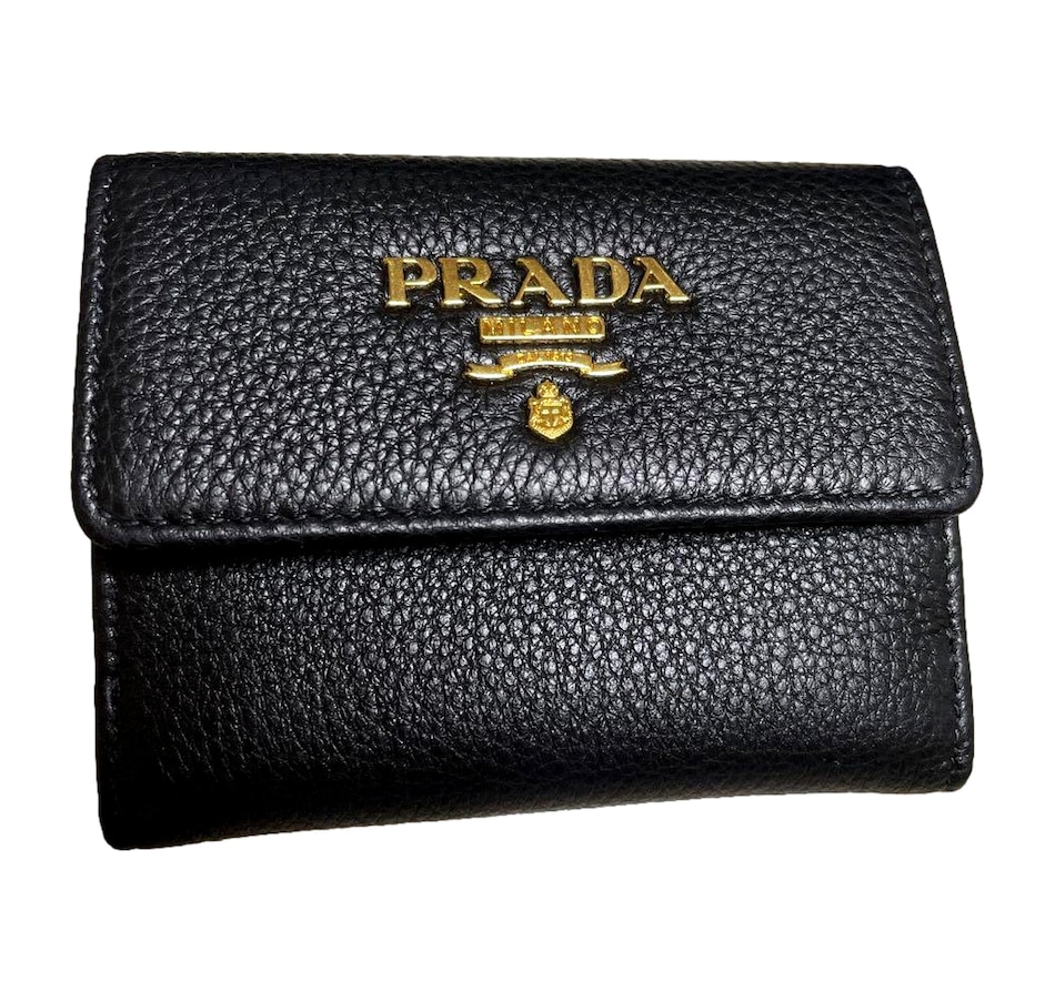 Discreet yet unmistakably Prada, the iconic gold metal logo punctuates the front flap with polished finesse. Inside, the thoughtfully organized trifold layout reveals a smart interior with multiple card slots, a secure snap closure coin pocket, and a transparent ID window for instant access. Every detail is tailored for the modern minimalist — blending function with fashion in the most elegant way.