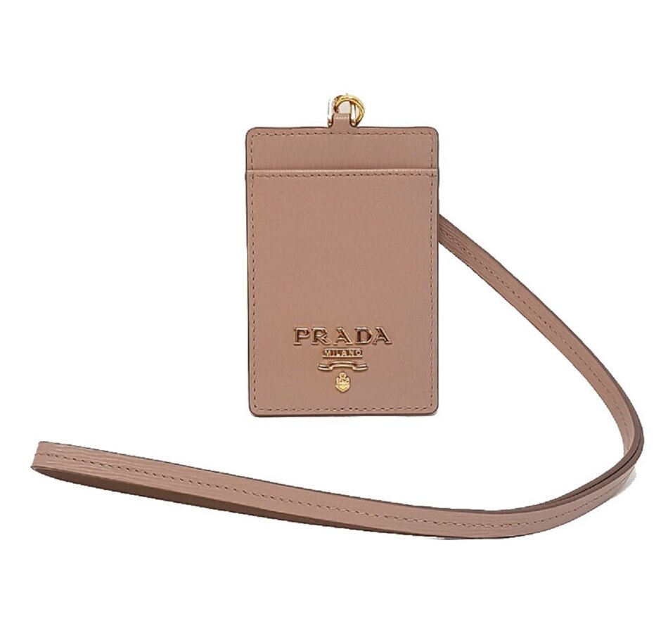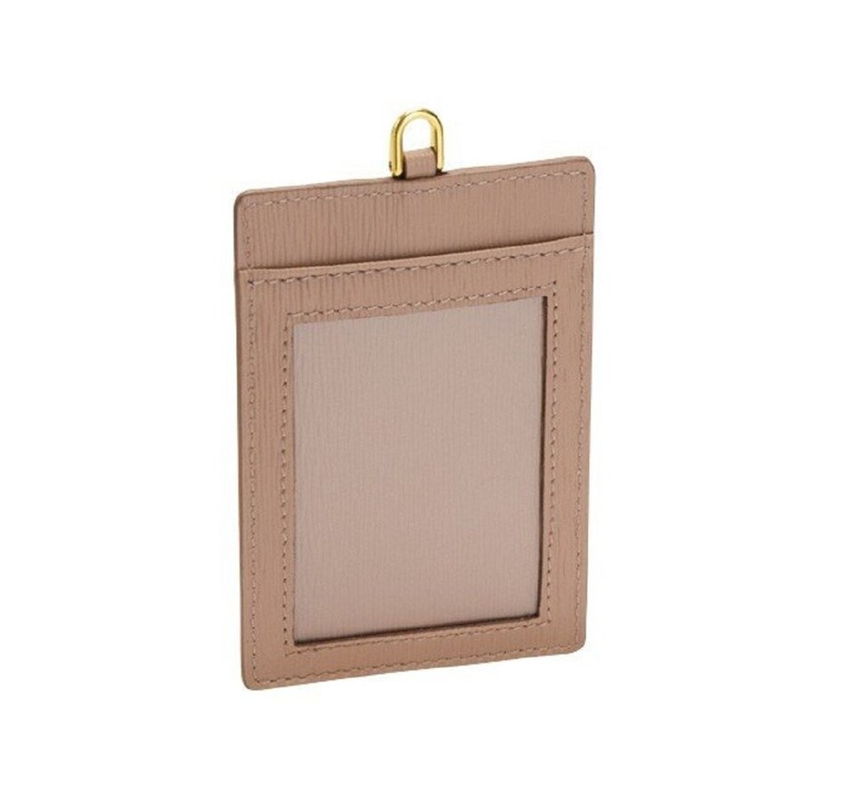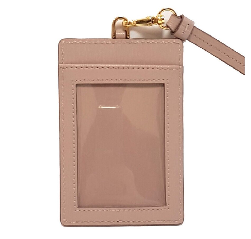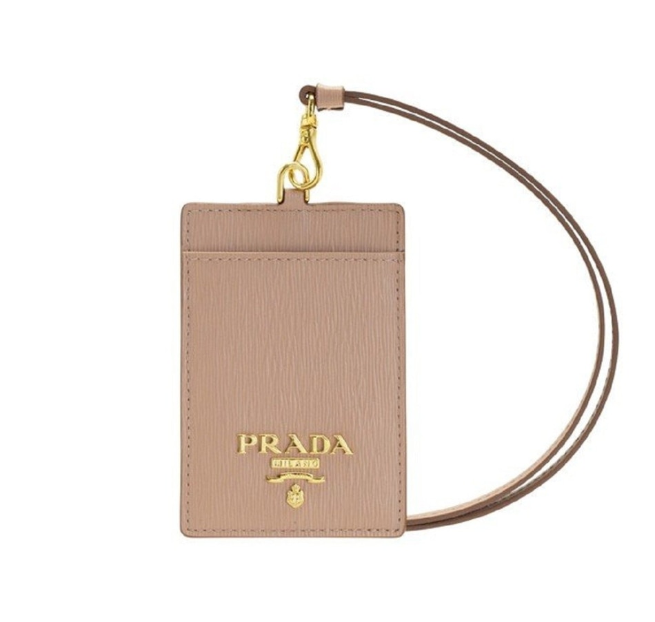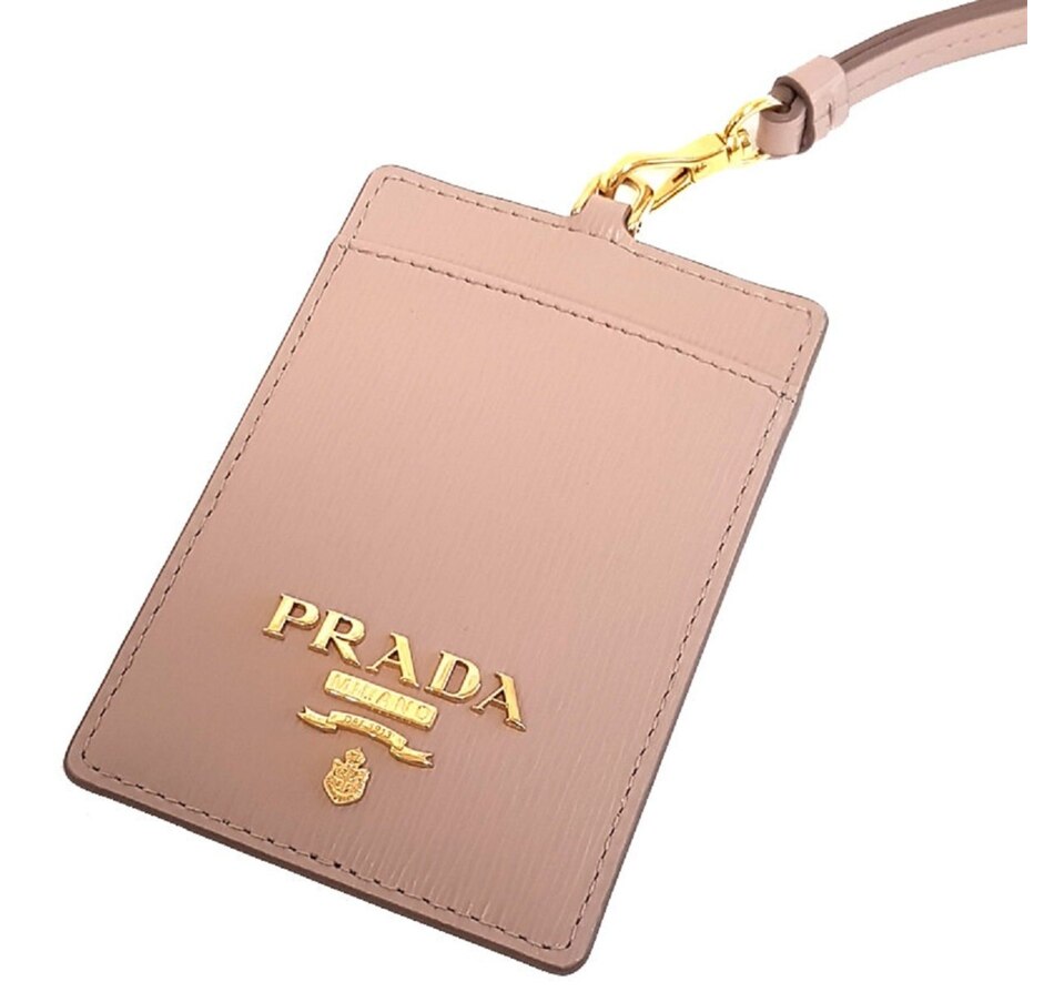 This stylish Prada badge holder is perfect for everyday use. Whether you're a working woman or a student, with this badge holder, you'll always be close to your necessary ID. The swivel hardware combined with the Prada logo featured prominently on the beige leather back allows for discrete concealment of any personal information. This badge holder functions with or without the lanyard.