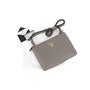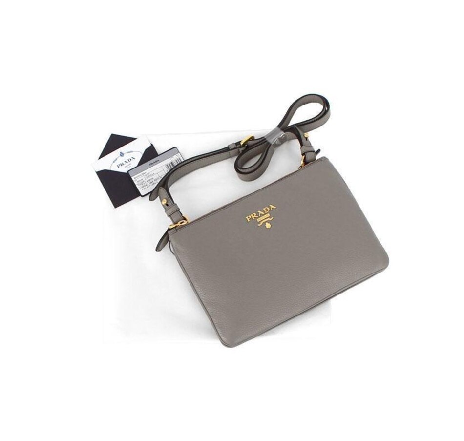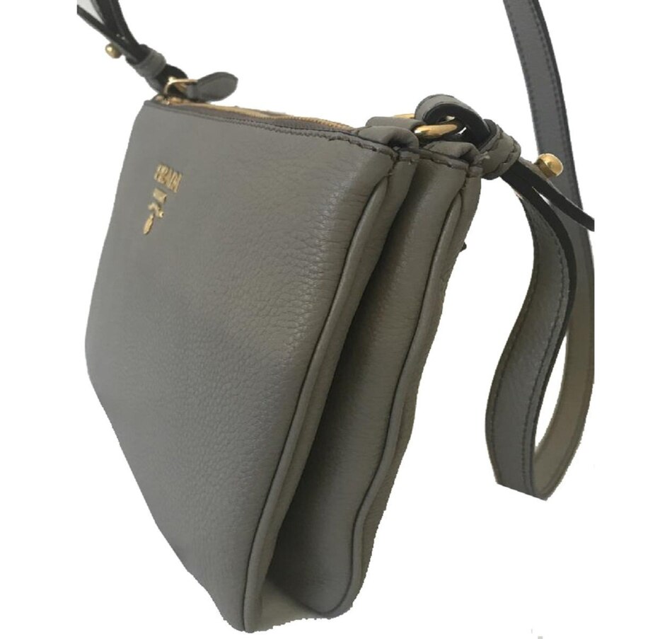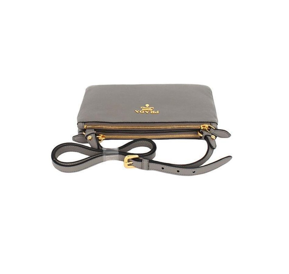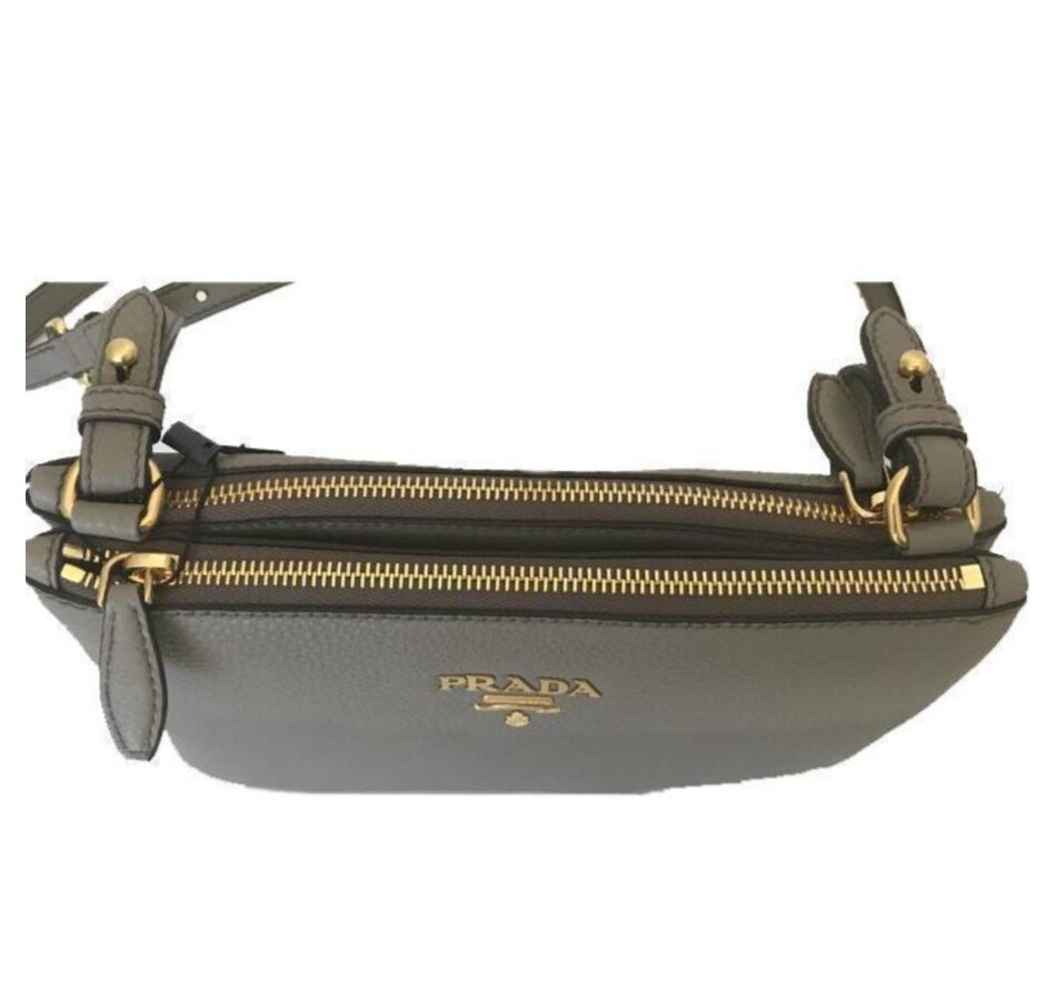 This gray Prada Vitello Phenix handbag is so practical and goes beautifully with most everyday looks. There are two compartments which is great for separating and organizing. The gold Prada Paris logo plaque looks so elegant with the pebbled Argilla gray leather. Includes authenticity cards and Prada dust-bag.