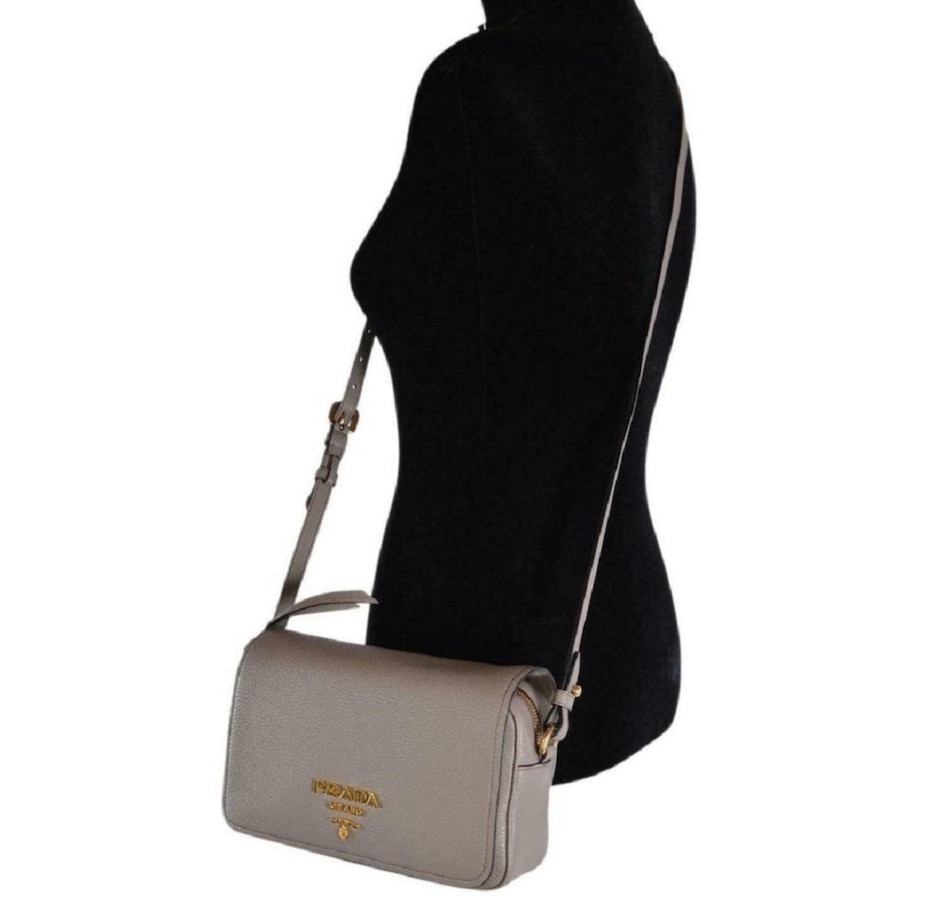 This Prada Vitello Phenix Crossbody is the perfect touch to any outfit! It is small enough to carry across your body, yet large enough to hold everything you need it to. You can wear it as a crossbody or remove the strap for an elegant clutch. It features the gold Iconic Prada Logo and a magnetic flap closure. Grab this bag before it's gone!
