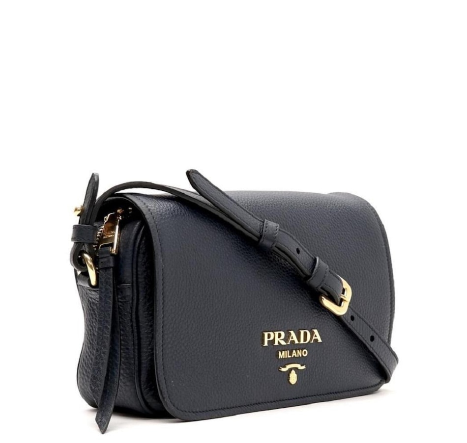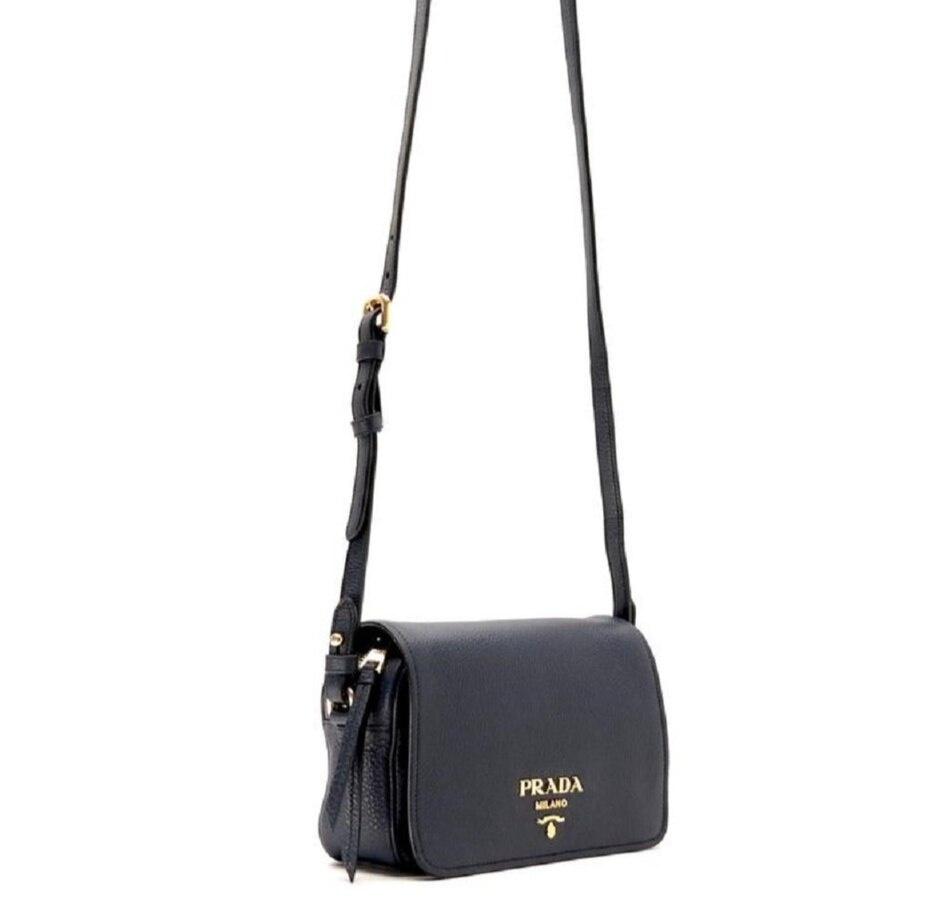 This Prada Vitello Phenix Crossbody is the perfect touch to any outfit! It is small enough to carry across your body, yet large enough to hold everything you need it to. You can wear it as a crossbody or remove the strap for an elegant clutch. It features the gold Iconic Prada Logo and a magnetic flap closure. Grab this bag before it's gone!