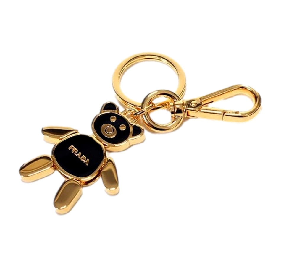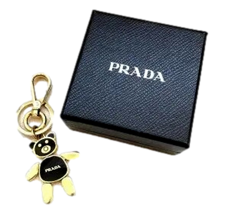 This keychain is not only a stylish embellishment but also practical, allowing you to keep your keys secure while enhancing your favorite bags. The attention to detail, from the gold eyes to the signature Prada logo, showcases the brand's commitment to craftsmanship. Lightweight and versatile, this teddy bear charm is an adorable way to express your personality and elevate your accessory game, making it a delightful addition to any fashionista's collection.