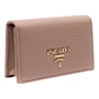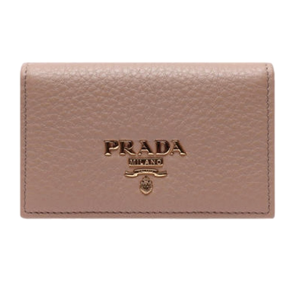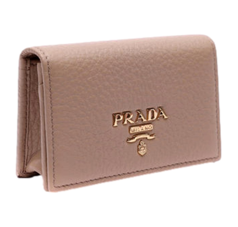 This Prada vitello grain cammeo beige card holder is absolutely adorable and is the perfect size for your personal information. The pebbled soft leather is sure be the classic accessory you need. The gold Prada Paris logo looks amazing with the simple beige leather. Includes authenticity cards and Prada box.  Model: 1MC122 Cammeo Beige vitello grain leather  Gold-tone hardware Prada Paris logo Measurements: 4.5" x 1" x 2.5" (LWH)  Includes authenticity cards and Prada box  Made in Italy