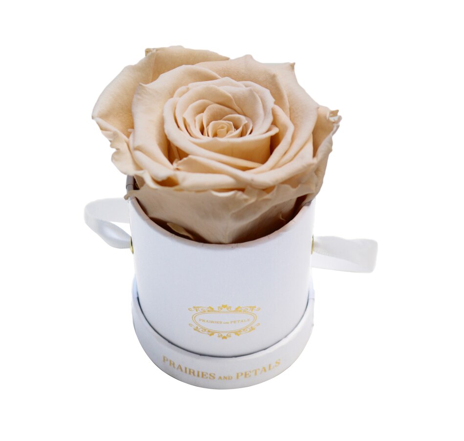 The Miniature Arrangement is a single rose styled in a keepsake Parisian style box. Each arrangement is individually handcrafted by our floral designers. With your arrangement, you will find a care card on how to best care for your arrangement to ensure your arrangement looks beautiful all year round. Make a loving gesture or add a stylish touch of elegance to your home, office, or shelf with a luxurious, Prairies and Petals Miniature arrangement.