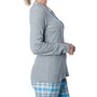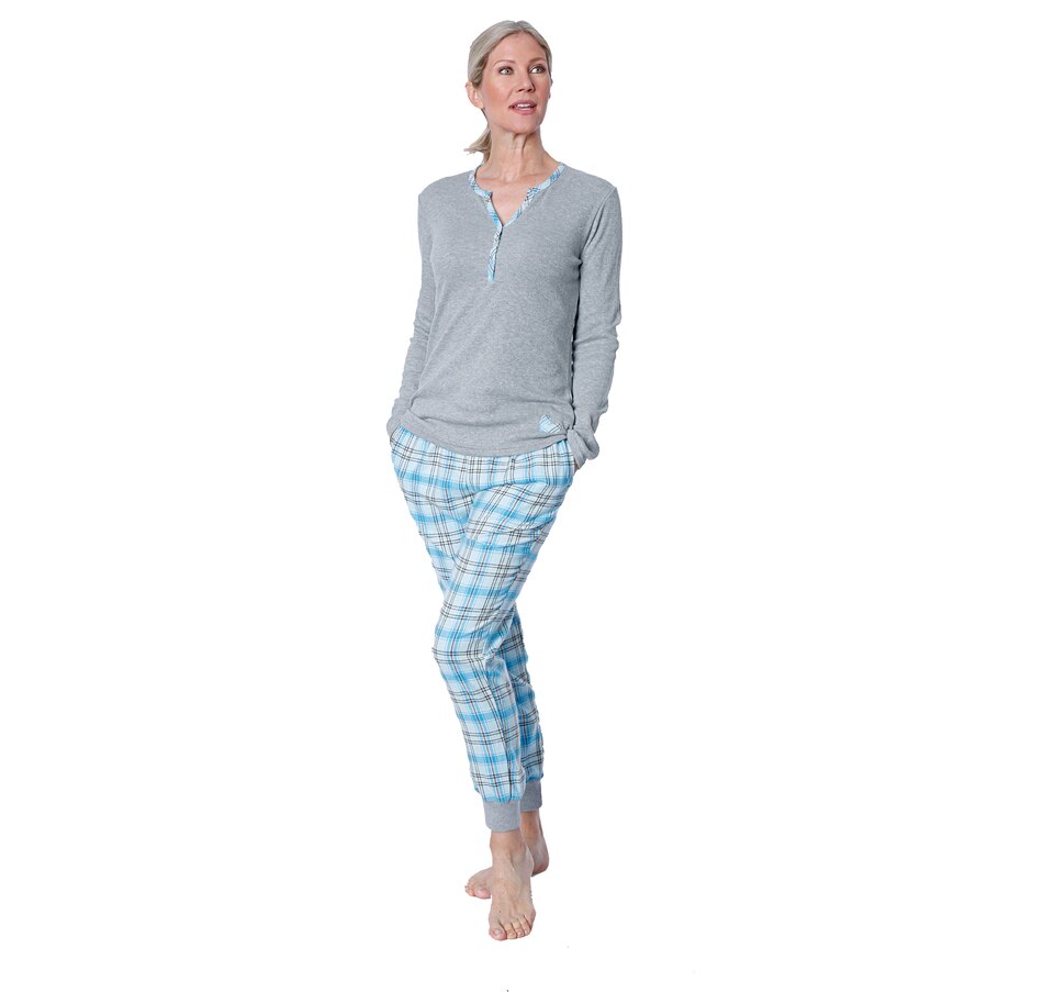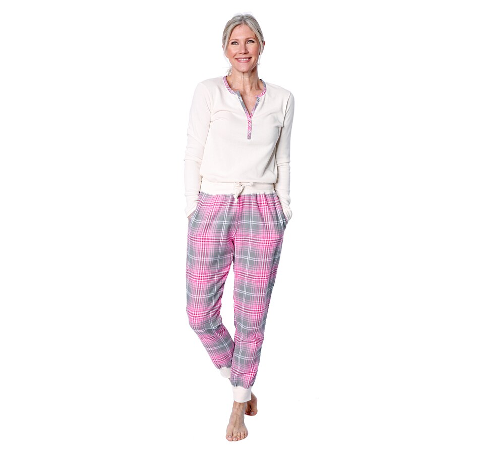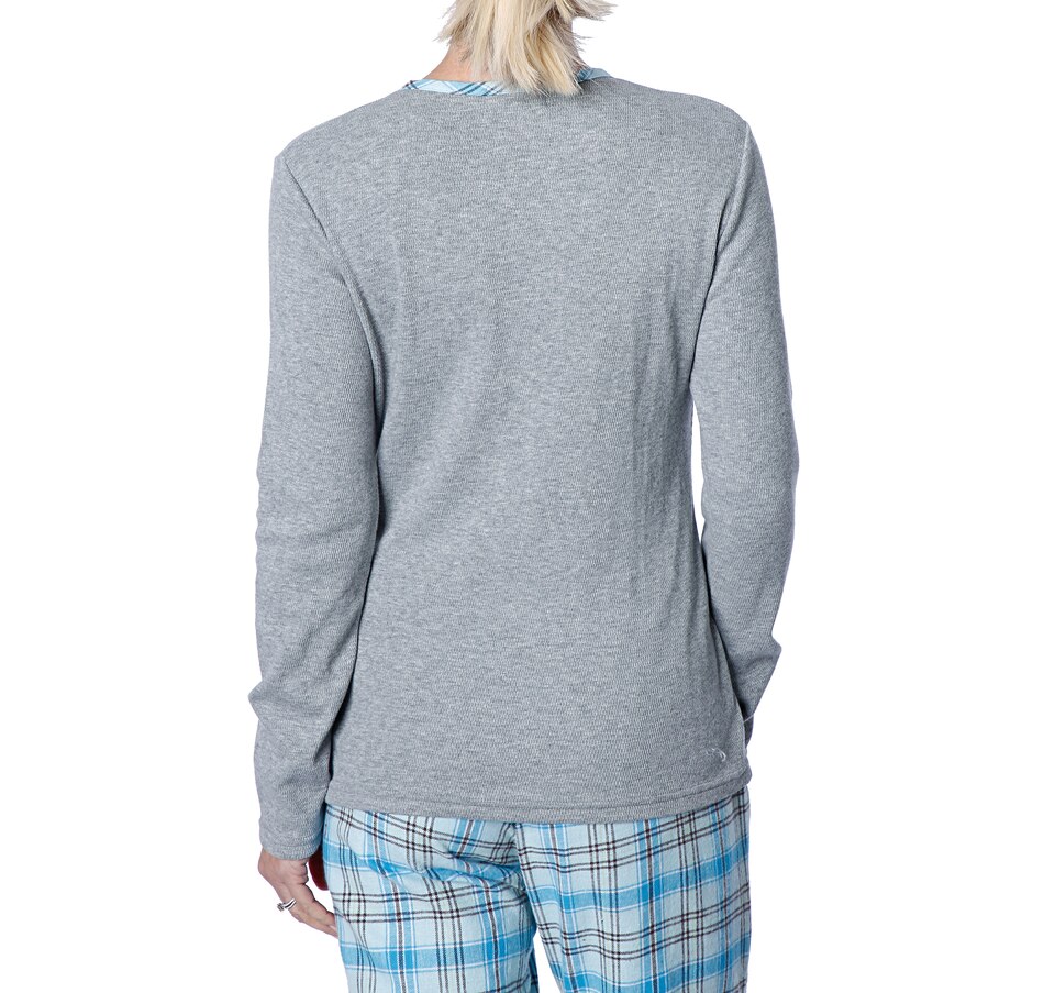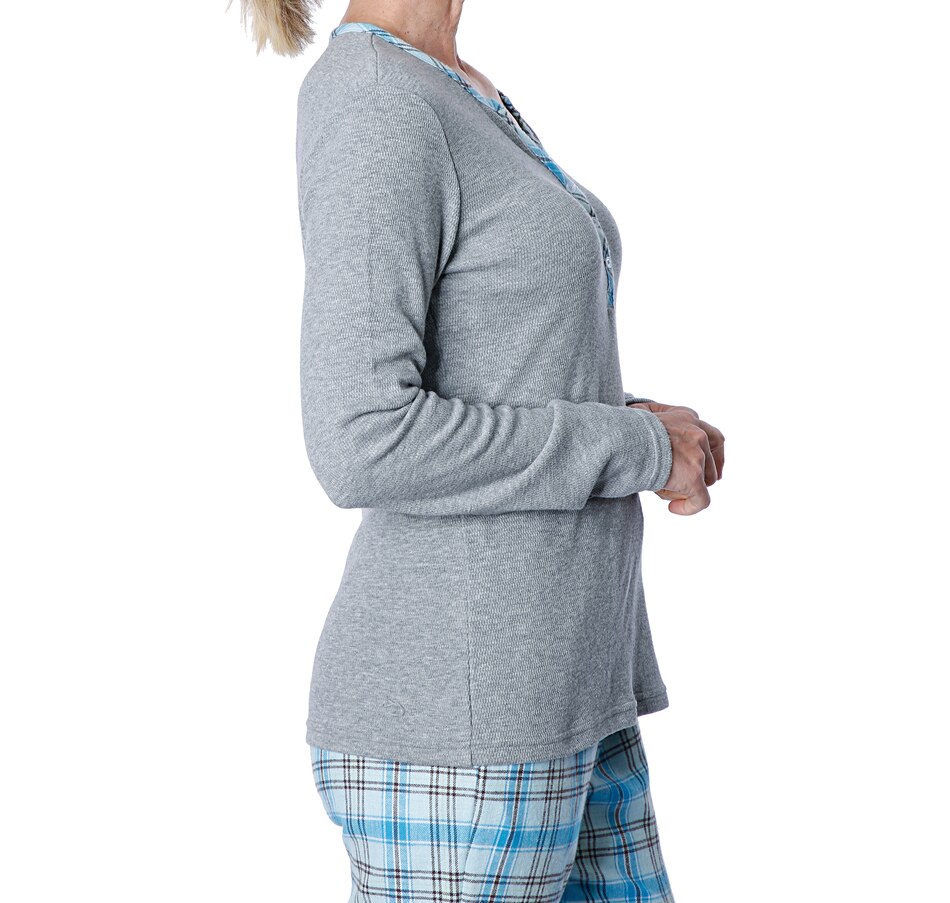 • Top features slim fit, henley waffle knit, flannel detailing