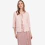 • Fabric: (body) 68% viscose, 27% nylon, 5% spandex; (dusty rose) 90% polyester, 7% rayon, 3% spandex; (front trim) 79% nylon, 16% metallic, 5% spandex
