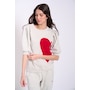 Crafted from soft French terry, this cozy yet stylish puff sleeve top adds a playful twist with a heart patch design made from upcycled wool sweaters. Features the PRELOVED upcycled red heart patch on the back.