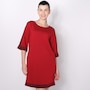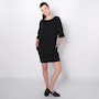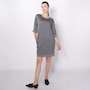 The Michelle from Preloved is a simple yet elegant dress with 3/4 sleeves and pockets. It features a metallic fabric trim on the sleeves and hem, and the body is made with ponte. It finishes with the familiar Preloved upcycled red heart patch on the back.