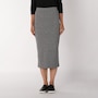 The Robin from Preloved is a form-fitting ribbed midi skirt, made with 95% cotton and 5% spandex for stretch. It features their familiar upcycled red heart patch on the back.