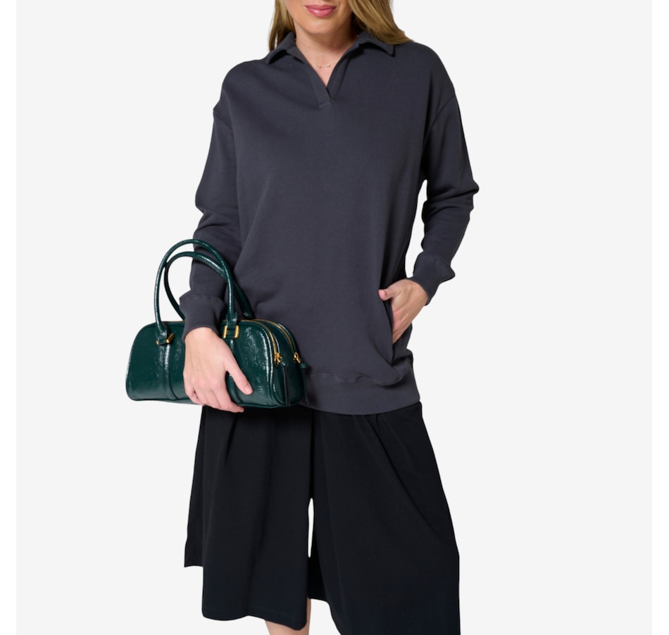 This sweatshirt from Preloved offers a roomy, relaxed fit yet still strikes that perfect balance between laid-back and polished. Its longline fit provides coverage to wear with your favourite leggings!