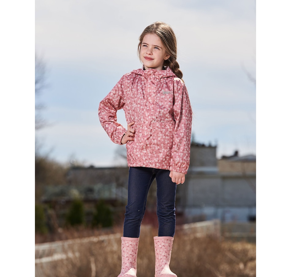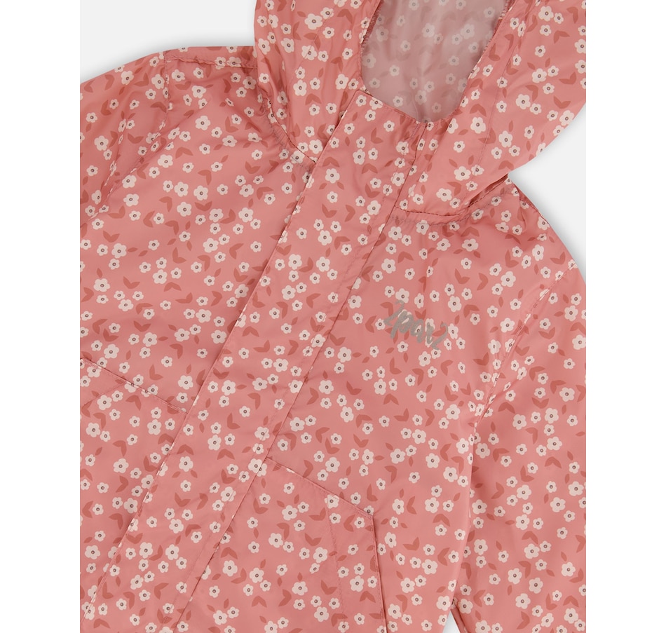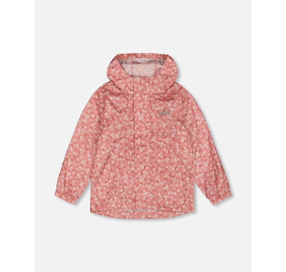 Our Printed Packable Windbreaker Small White Flowers on Pale Pink is a mid-season must-have! Made from recycled fabric and finished with a waterproof polyurethane coating, this jacket features a zip front closure with a windstopper placket, an attached hood, side pockets, and reflective accents. For travel and storage, it packs up into a small, easy-to-carry pouch.