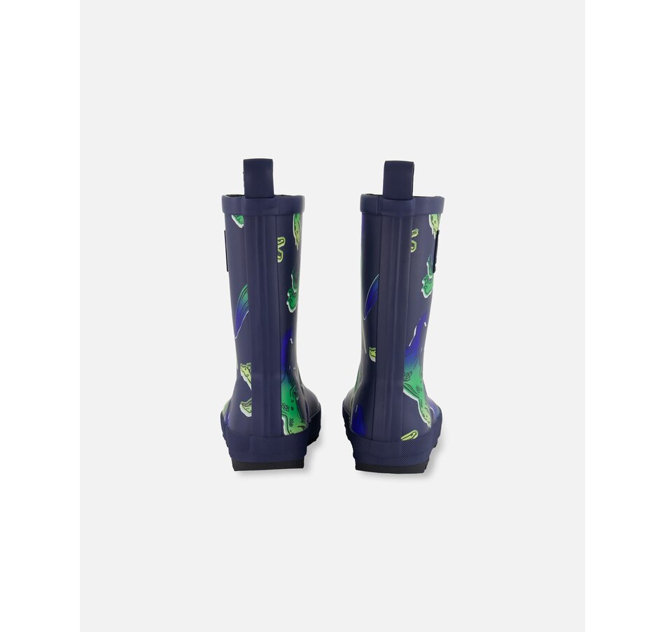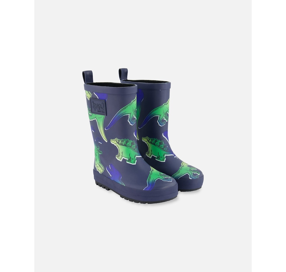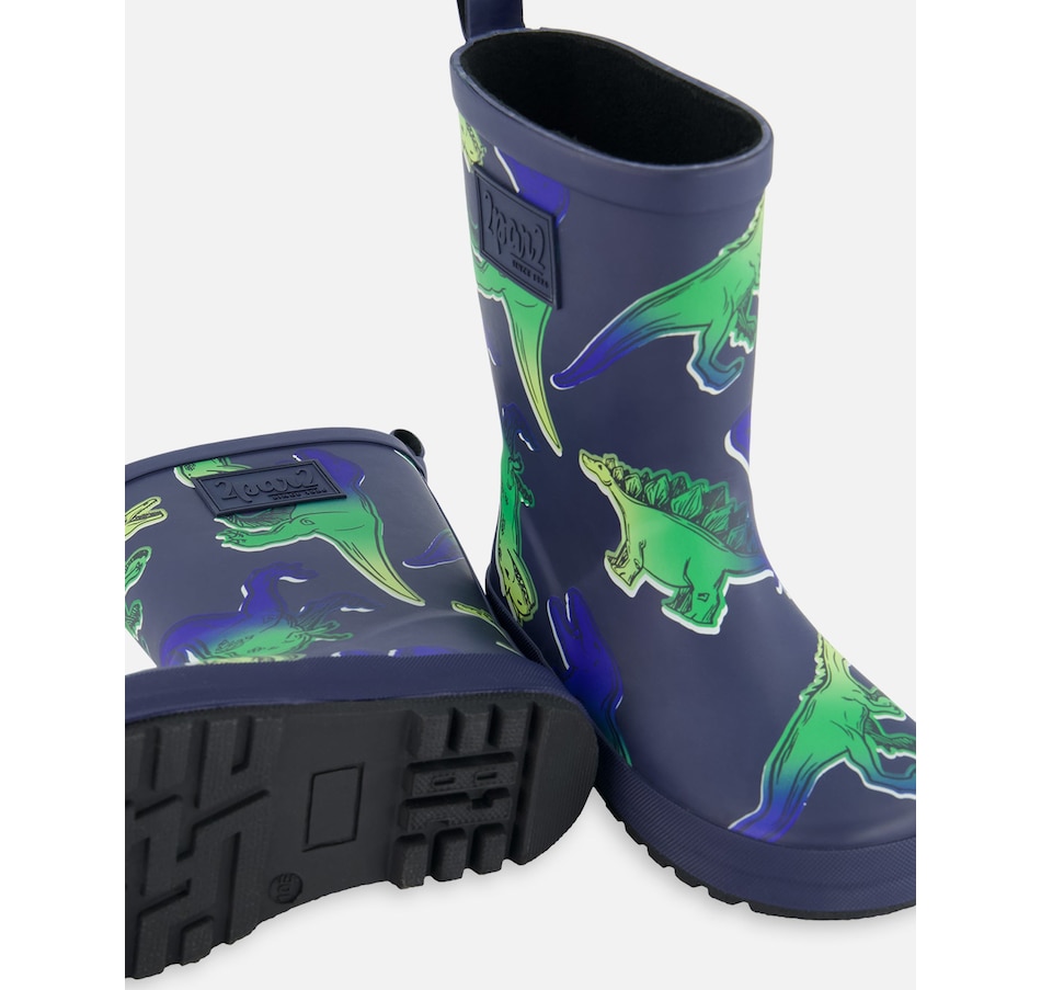 With a bold allover dinosaur print, our Printed Rain Boots Blue and Green Dino on Navy are perfect for puddle jumping! In natural rubber with a soft, plush lining, these waterproof boots turn dreary, wet days into fun fashion moments!