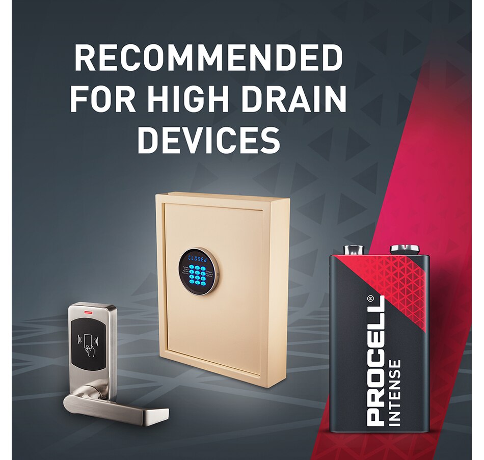 Procell Alkaline Intense Power industrial batteries are ideal for powering low-drain professional devices which require constant current over a long period of time, such as smoke/carbon monoxide detectors, security keypads, remote controls, wireless mice, keyboards, motion sensors and flushometers.