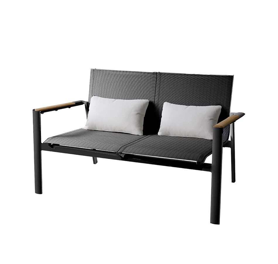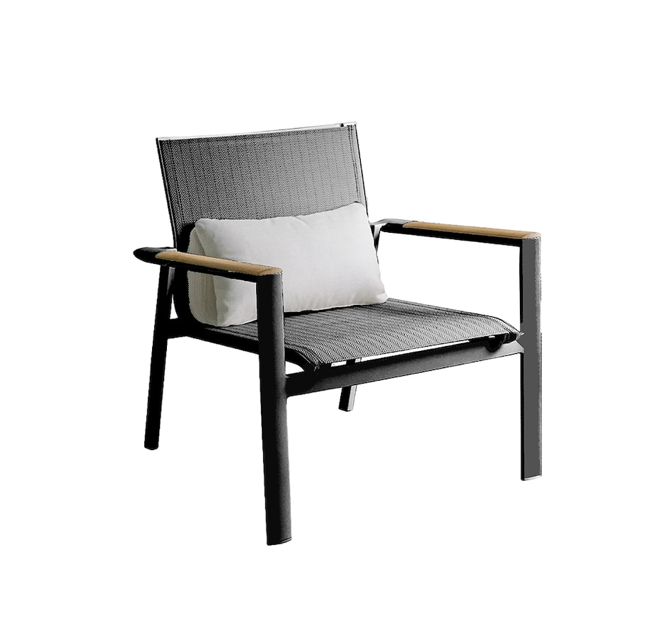 This love seat and club chair set from Protégé's Atlas collection is complemented by a textylene sling and carefully placed teak arm accents. Powder-coated aluminum frames provide durability and strength while textylene seats offer comfort and breathability. The teak accents add a touch of natural beauty, creating a visually appealing contrast with their sleek design. This collection is also 100 percent waterproof, making your outdoor experience simple and stress-free.