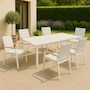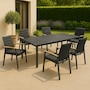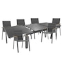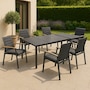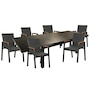 Designed with a perfect blend of aesthetics and functionality, the Magic Extension Table from Protégé offers a robust solution for your outdoor dining and entertaining needs. It's masterfully constructed from extruded aluminum and comes with six Atlas dining chairs, which are a beautiful combination of aluminum, natural teak and worry-free textilene, plus you can enjoy the simplicity of the 100 percent waterproof textilene sling. It can comfortably seat six when closed and up to 10 when opened, and the locking pins allow you to keep the table closed for safety whether the extensions are open or closed. This perfect perfect low-maintenance combination is available at a great value through TSC!