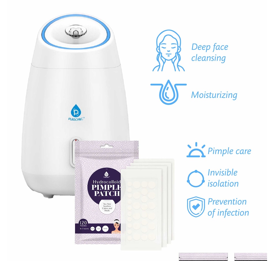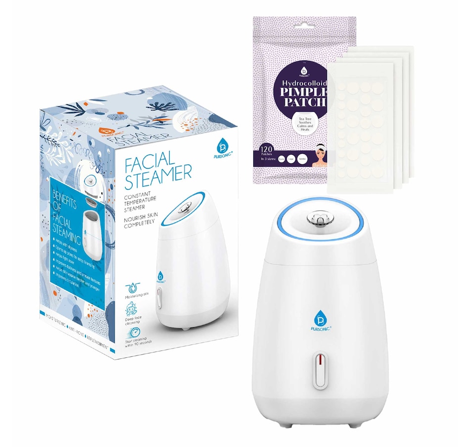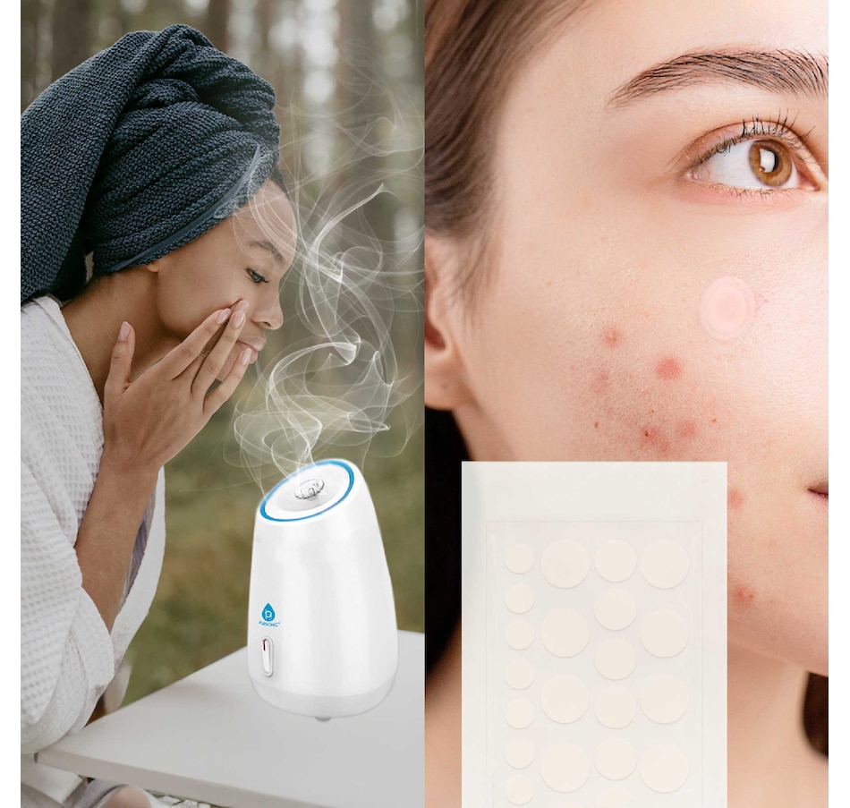 Embark on a transformative skincare journey with our expertly curated bundle, designed to cater to all your facial care needs:Advanced Facial Steamer:Deep Pore Cleansing: Our steamer uses advanced nano-ionic steam technology to emit a fine mist that penetrates deep into the skin. This process helps to effectively dislodge dirt, oil, and other impurities from the pores, reducing the occurrence of acne and blackheads.Enhanced Hydration & Absorption: The warm steam not only hydrates the skin but also enhances the permeability of the epidermis, allowing for better absorption of serums, moisturizers, and other skincare products.Therapeutic Skin Benefits: Regular use can help to reduce sinus congestion, promote better sleep, and provide a relaxing, spa-like experience right in your home. The steamer also aids in promoting blood circulation, leading to a naturally healthy and glowing complexion.Versatile Hydrocolloid Pimple Patch Set (120 Patches):Customized Acne Treatment: With 120 patches in three sizes, our set is uniquely designed to cover various types of pimples and blemishes. The Regular size is perfect for small, emerging pimples, the Large size for clusters of acne, and the Jumbo size for larger, more prominent blemishes.Advanced Healing Technology: These hydrocolloid patches create a moist environment, which speeds up the healing of pimples while reducing the risk of scarring. The patches also absorb pus and fluids from the blemish, flattening and healing it faster.Discreet and Protective: Each patch acts as a protective barrier against dirt and bacteria, preventing further infection. They are ultra-thin and translucent, blending seamlessly with the skin, making them suitable for day or night use.