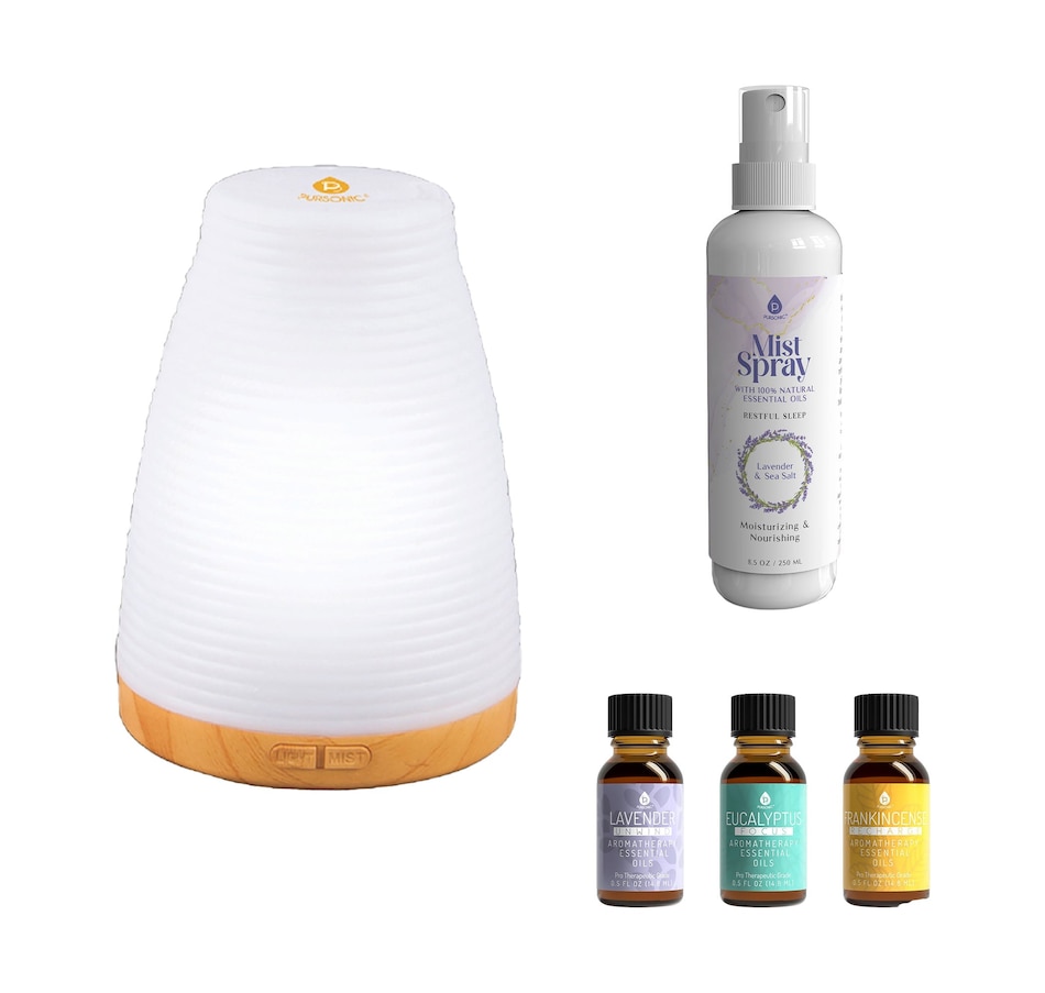Bring peace, comfort, and freshness into your everyday routine with the Pursonic Aromatherapy Essentials Bundle, featuring three handpicked items designed to elevate your self-care space. This complete set includes the 2-in-1 USB Aroma Diffuser, a 3-Pack of Pursonic Essential Oils, and the calming Lavender & Sea Salt Mist Spray—everything you need for stress relief, home ambiance, and holistic well-being.What’s Included:Pursonic 2-in-1 USB Essential Oil Aroma Diffuser (3.4 oz capacity)A compact and stylish diffuser designed to enhance your space with natural fragrance and gentle humidity. Powered by USB, this diffuser is quiet, portable, and offers two mist settings. The built-in LED lights shift through calming colors, creating a peaceful environment whether you’re at home or on the go.Features:2 mist settings with automatic shut-offColor-changing LED lights for mood enhancementQuiet ultrasonic technology for continuous mistUp to 6 hours of use per fillUSB powered and compact for travelPursonic Aromatherapy Essential Oils 3-Pack – Lavender, Eucalyptus, FrankincenseA carefully curated trio of essential oils to match your mood and support your wellness throughout the day.Scents & Benefits:Lavender – Promotes calm and better sleep; helps reduce anxiety and stressEucalyptus – Refreshing and clarifying; opens airways and purifies the environmentFrankincense – Energizing and grounding; boosts focus and moodUsage Tips:Add a few drops to your diffuser or bathDilute and apply to pulse pointsAlways patch-test before applying to skinPursonic Mist Spray with Natural Essential Oils – Lavender & Sea SaltAn elegant aromatherapy mist for skin, linens, and air. Infused with 100% natural essential oils, this spray hydrates your skin and calms your mind, whether you’re getting ready for bed or freshening up your room.Key Benefits:Lavender oil helps you unwind and sleep peacefullySea salt brings a crisp, coastal scent for instant refreshmentBotanical extracts leave skin soft, lightly scented, and moisturizedGreat for use on skin, pillows, linens, or as a room sprayWhy You’ll Love This Bundle:A complete set to relax, refresh, and restorePerfect for home, office, or travelIdeal gift for wellness lovers, busy professionals, or anyone seeking peace of mindSafe, clean, and gentle—free from parabens, harsh chemicals, and synthetic fragrancesCreate your own spa-like experience anywhere with the Pursonic Aromatherapy Essentials Bundle with USB Diffuser, Essential Oils & Mist Spray. Breathe deeply, relax fully, and transform your space into a haven of calm.