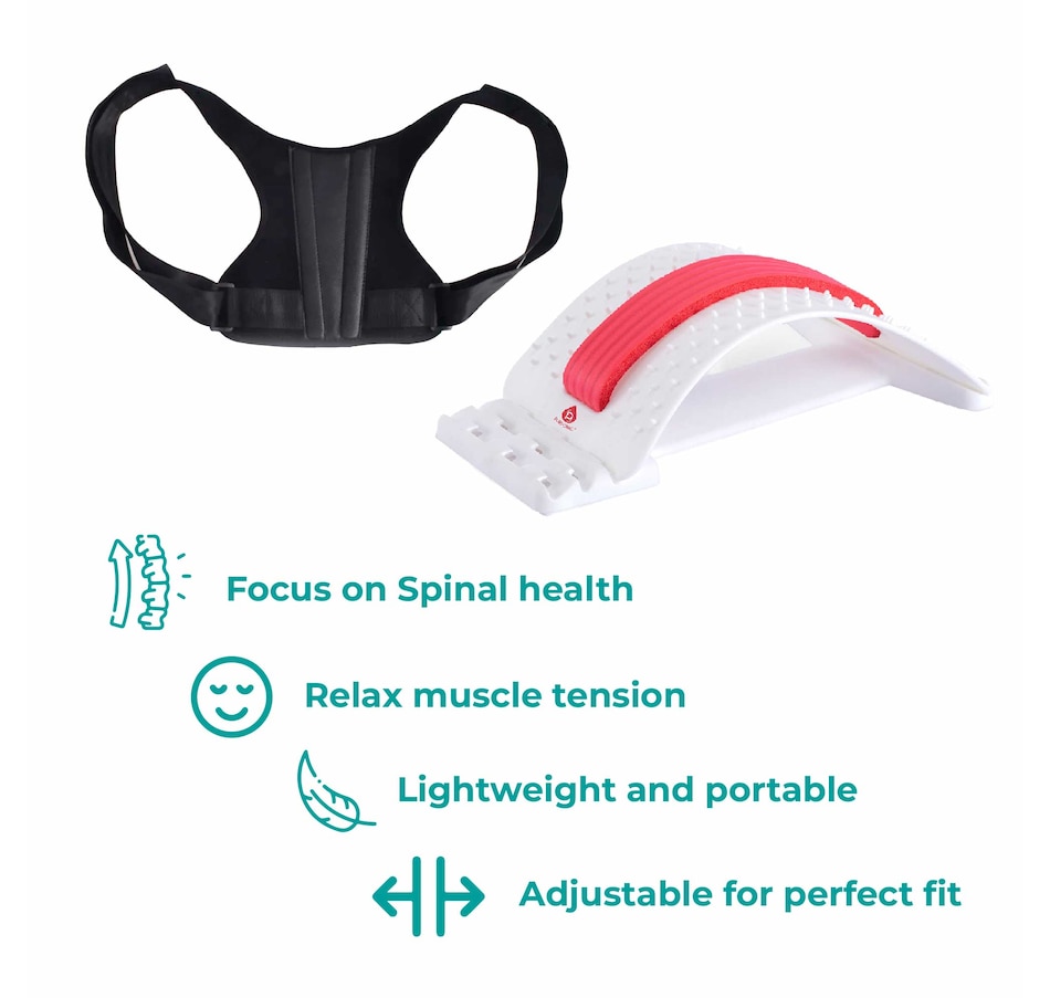 Elevate your back health with our Ultimate Back Care Duo, meticulously designed for those seeking relief and improvement in spinal health. This premium set includes a Multi-Level Back Stretching Device and an Adjustable Posture Corrector, each engineered for maximum effectiveness and comfort.Multi-Level Back Stretching Device:Three Adjustable Levels: Customize your stretch intensity. Easily adjust to three different levels to suit your flexibility and comfort needs.90 Massage Points: Strategically placed for optimal relief, these points help in releasing tension, improving circulation, and providing a soothing massage effect.Easy Assembly: Hassle-free setup. Our back stretcher is designed for easy assembly and disassembly, making it perfect for home or travel use.Adjustable Posture Corrector:Back Support Bar: Experience enhanced stability. The integrated back support bar ensures your spine is aligned correctly, offering substantial support to the lower back.Breathable Upper Back Brace: Comfort meets function. Made with breathable materials, this brace keeps you cool and comfortable while providing firm support to the upper back.Adjustable Buckle for Perfect Fit: Tailored to your body. The adjustable buckle allows you to customize the fit, ensuring comfort and effectiveness in posture correction.Together, these tools work in harmony to assist in alleviating back pain, correcting posture, and promoting overall spinal health. Whether you're dealing with daily discomfort or striving for better posture, our Ultimate Back Care Duo is your companion in achieving a healthier, more comfortable back.