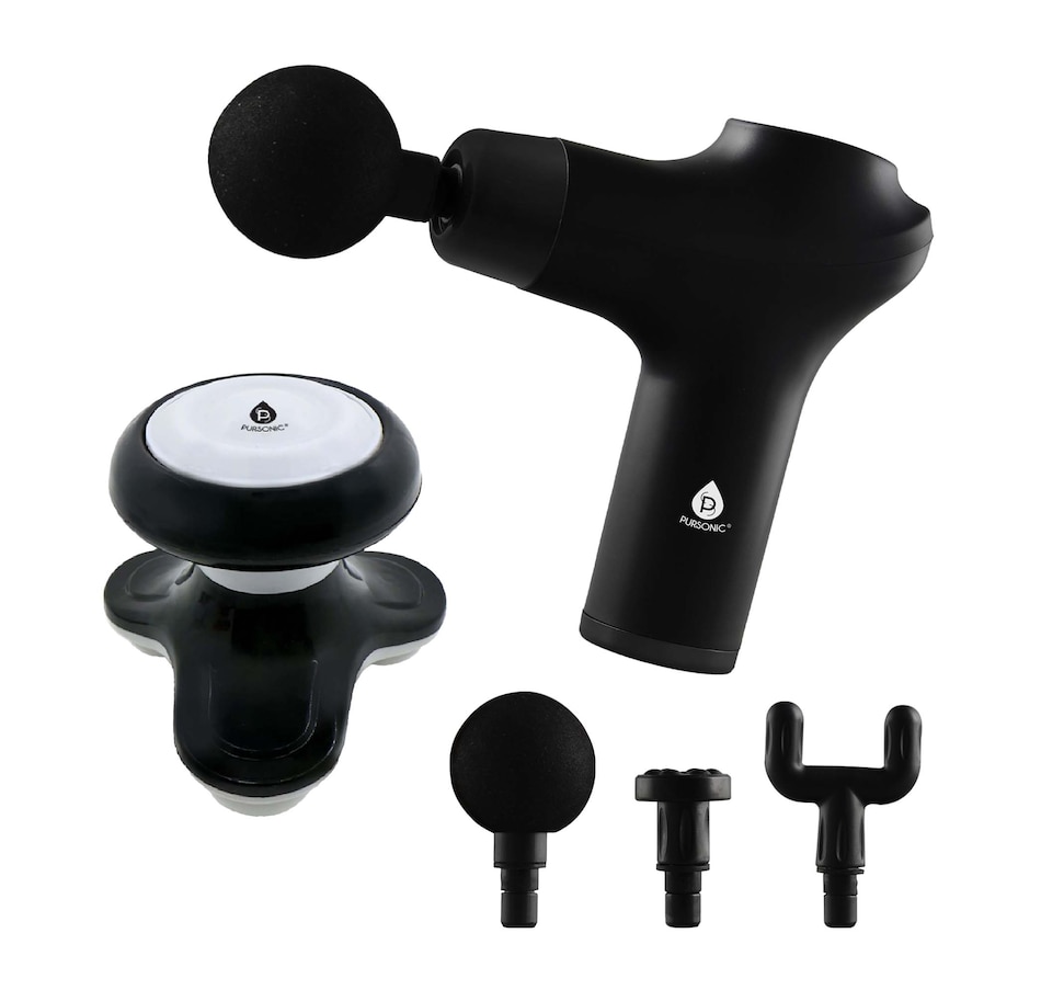 Revitalize Your Body—Experience Customized Comfort AnywhereUpgrade your relaxation routine with the Pursonic Relaxation & Recovery Massage Bundle. Designed to meet all your massage therapy needs, this dynamic duo combines power, portability, and precision for effective tension relief and muscle recovery. Perfect for athletes, fitness enthusiasts, or anyone who values self-care.What’s Included1. Pursonic 3-Speed Cordless & Rechargeable Professional Massage GunExperience professional-grade relief with:Three Speed Settings: Customize your massage from gentle relaxation to deep tissue relief.Interchangeable Attachments: Round head for large muscle groups, bullet head for pinpoint relief, and flat head for overall relaxation.Whisper-Quiet Operation: Relax without noise distractions.Rechargeable Battery: Long-lasting power for uninterrupted therapy.Ergonomic Design: Lightweight with a comfortable grip for fatigue-free use.Benefits:Enhances blood circulationReduces muscle sorenessSpeeds up recovery and relaxation2. Pursonic Handheld Electric Sport MassagerA compact and versatile solution for quick comfort:3 Vibrating Nodes: Target small or large muscle areas.One-Touch Activation: Instant massage at your fingertips.Versatile Use: Perfect for feet, neck, back, joints, shoulders, and more.Portable Design: Lightweight and easy to carry for home, office, or travel use.Battery Operated (3 AAA, not included): Convenient, cord-free operation.Why Choose This Bundle?All-in-One Solution: Tailor your massage experience to any muscle group or tension level.Portable and Convenient: Relax and recover wherever life takes you.Perfect for Everyone: From athletes to office workers, it’s the ideal choice for post-workout recovery or daily relaxation.Elevate Your Self-CareInvest in your well-being and feel the difference in comfort and vitality.Order the Pursonic Relaxation & Recovery Massage Bundle today and transform the way you relax!