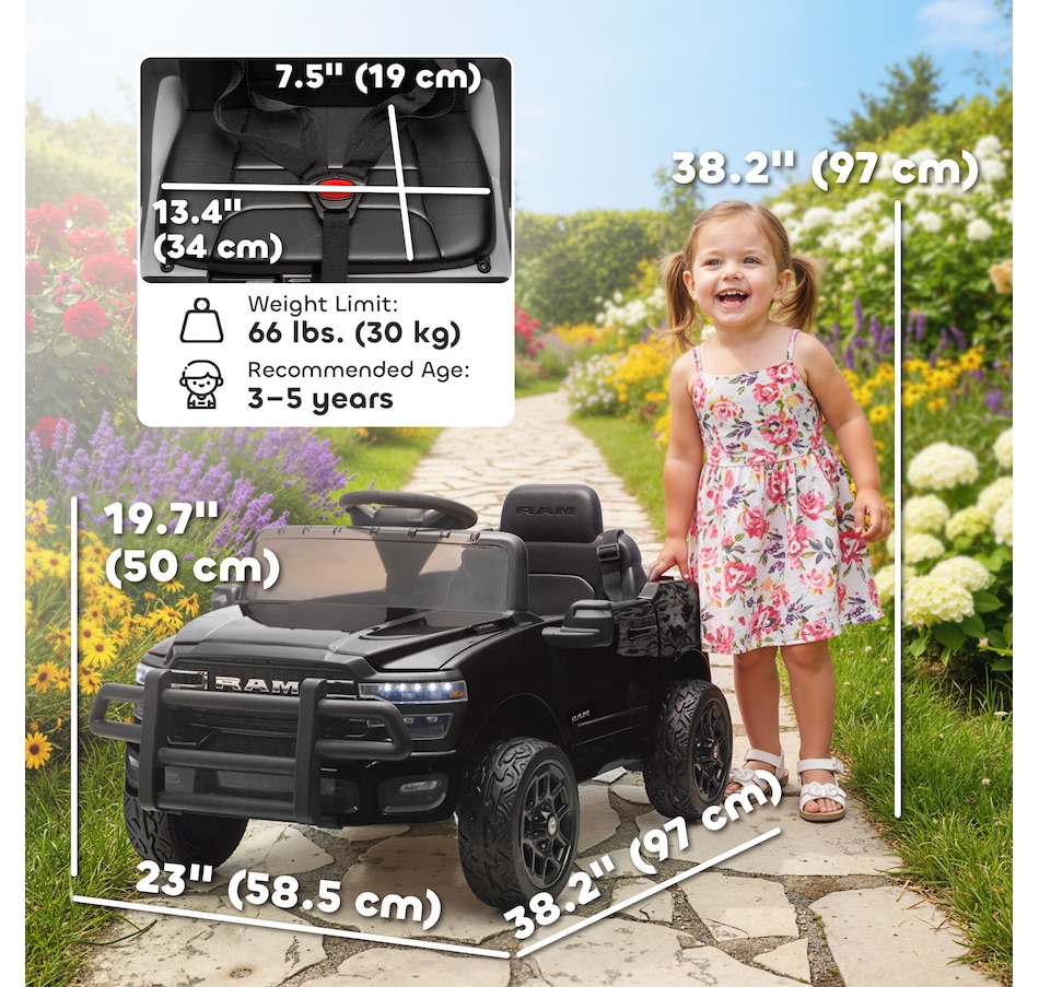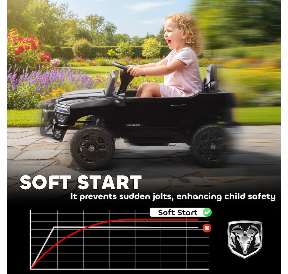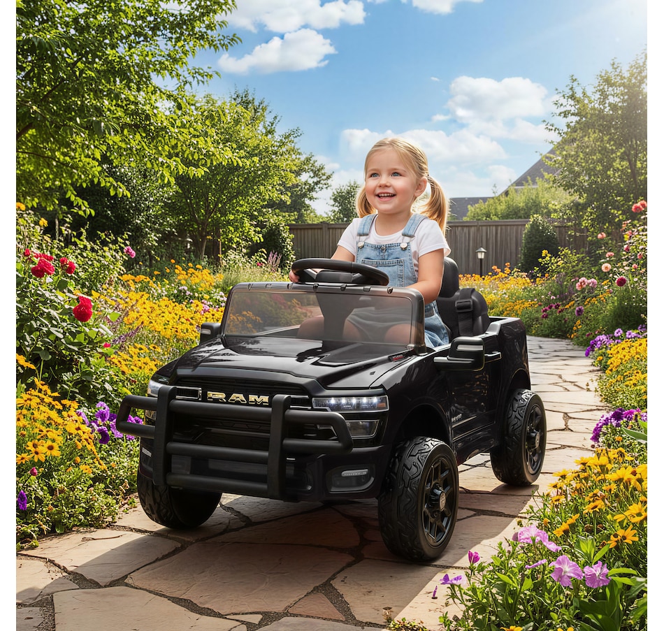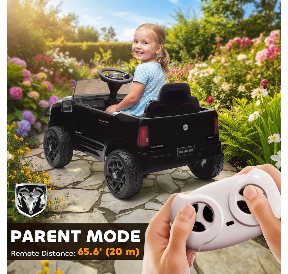 The officially licensed Dodge RAM 3500 Qaba kids' electric car offers your child the thrill of driving a real truck. With a parent remote for control, while soft-start and suspension offer a smooth and safe journey. The powerful dual motors and adjustable speeds provide exciting adventures, while Bluetooth and USB features add fun music. This toddler car lets you relax and watch them build confidence on every family stroll.Features:
