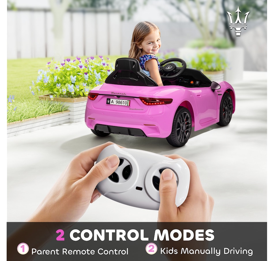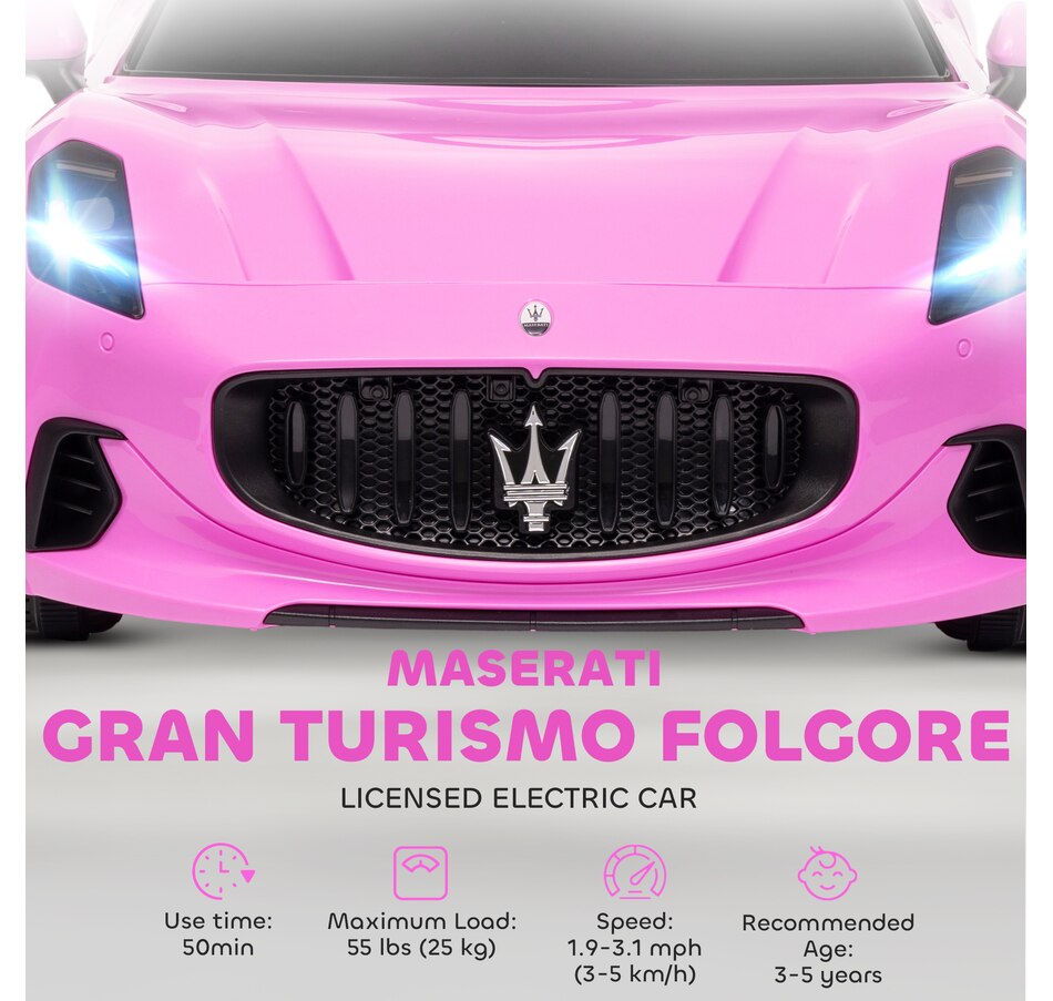 12V Maserati Gran Turismo Licensed Electric Car for Kids, Pink