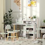 Transform any room into a creative oasis with the Qaba Kids Desk and Chair Set! Featuring a wide desktop suitable for reading, writing, or crafting and spacious storage with two drawers and shelves. This kids desk and chair set, crafted with smooth, rounded MDF corners, is a delightful gift that encourages neat habits and sparks imagination.Features: