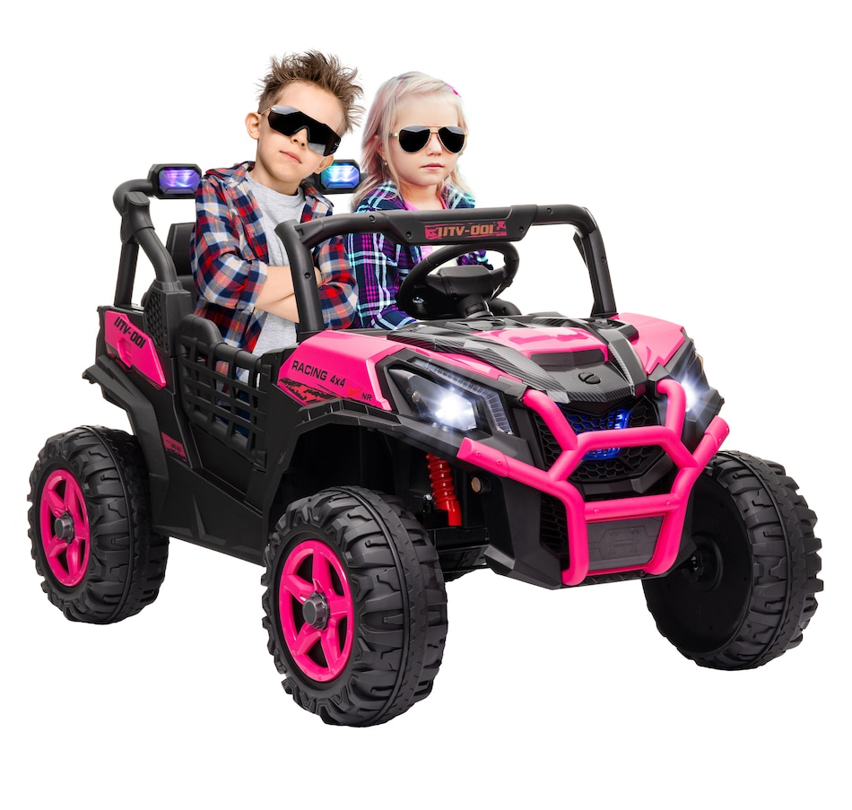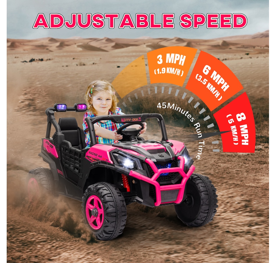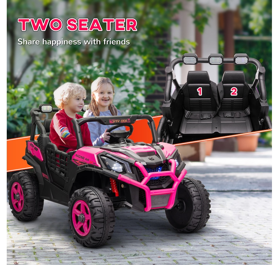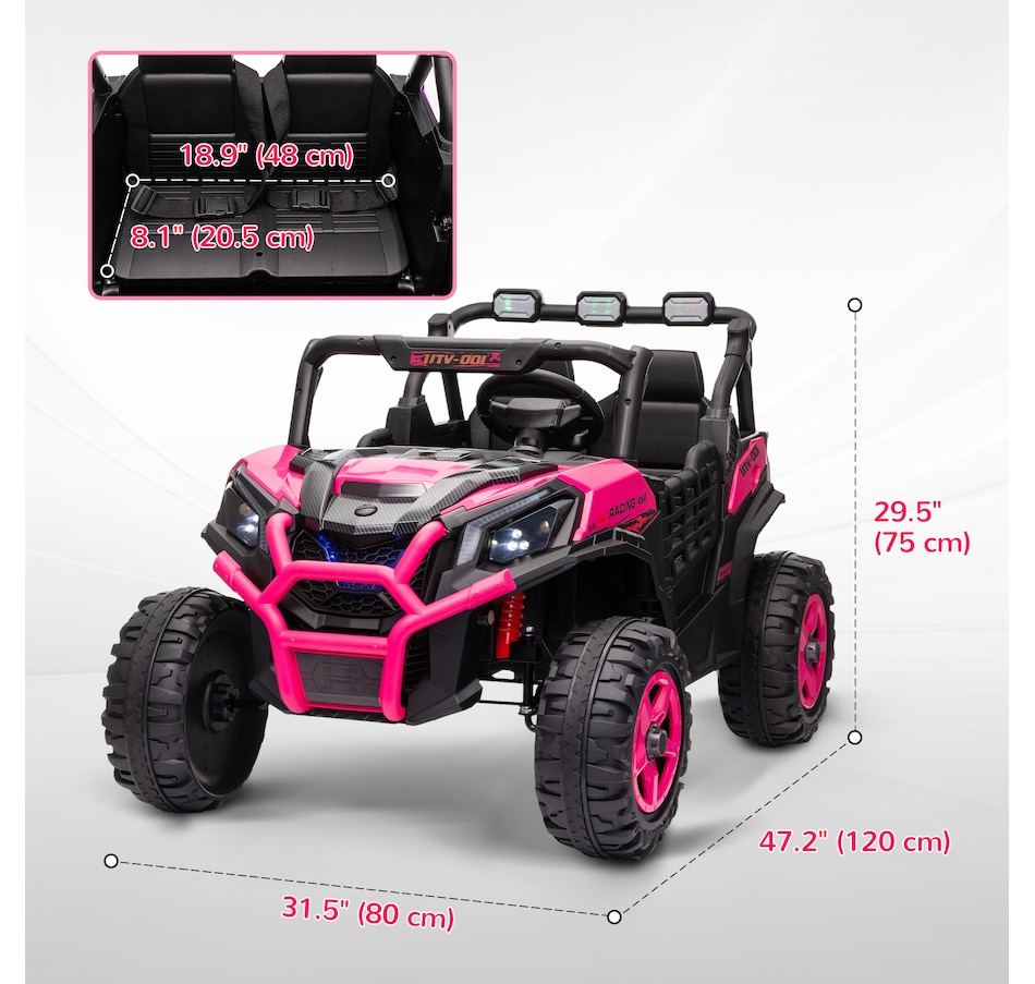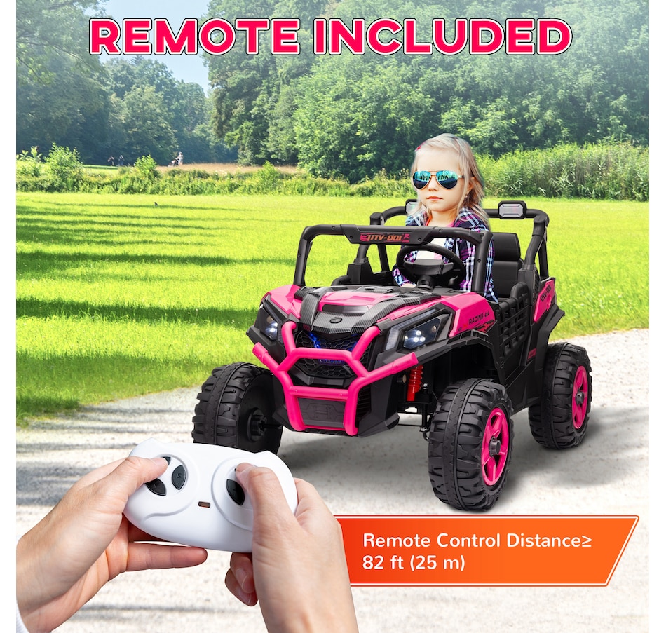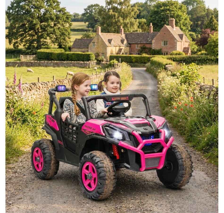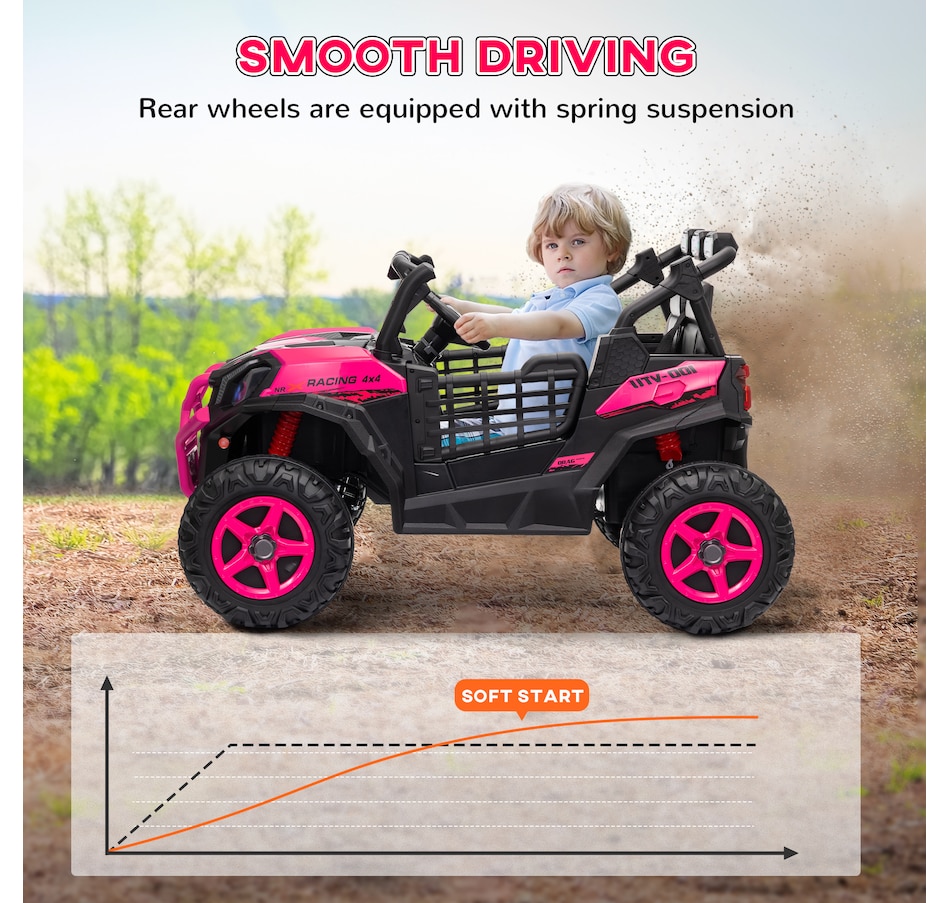 Zoom into Adventure with the Qaba 24V Kids UTV! This electric car for kids features dual motors and a 2-seater design with safety belts, ensuring a thrilling yet secure ride. With spring suspension on the rear wheels, enjoy up to 45 minutes of runtime while efficiently tackling various terrains. This vehicle is great for little explorers eager to take the wheel or be guided by the remote control!