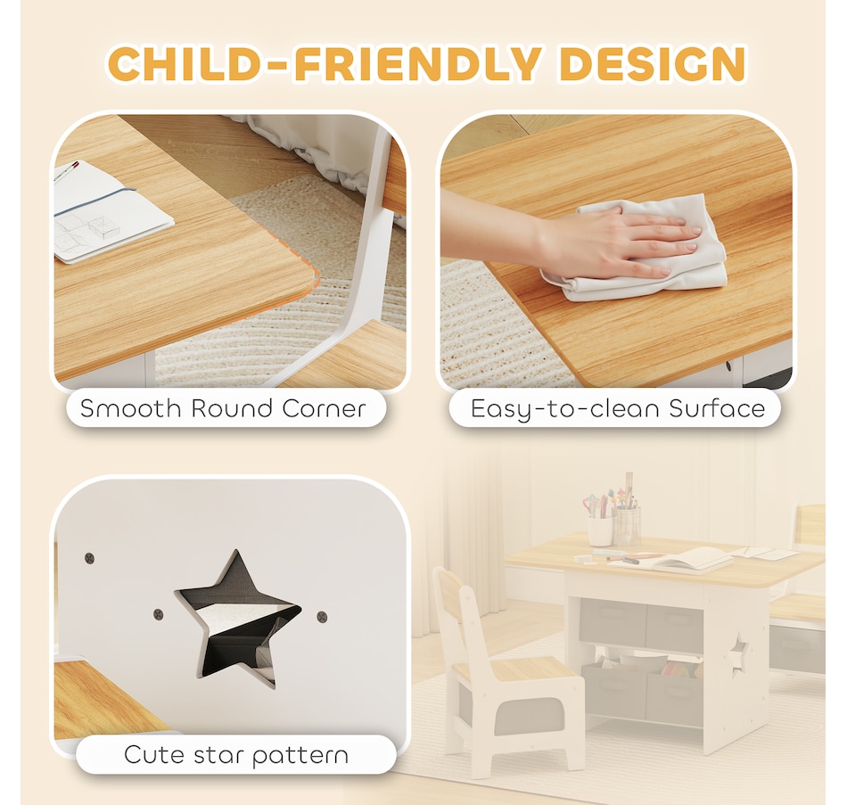 Tired of playroom chaos and constant worry over sharp corners? This Qaba toddler table and chair set creates a dedicated, safe space for your child's imagination to flourish. Six storage drawers neatly tuck away clutter, fostering tidiness. With its strong build and rounded edges, this children's table and chair set offers peace of mind, letting you cherish every creative moment, while your little one plays and learns.Features:
