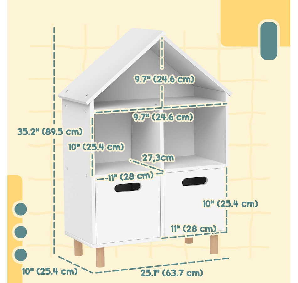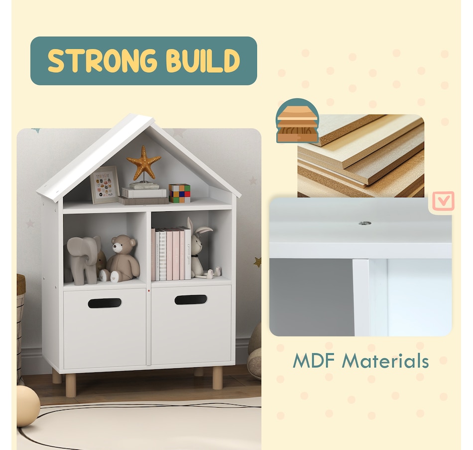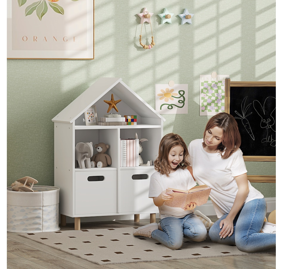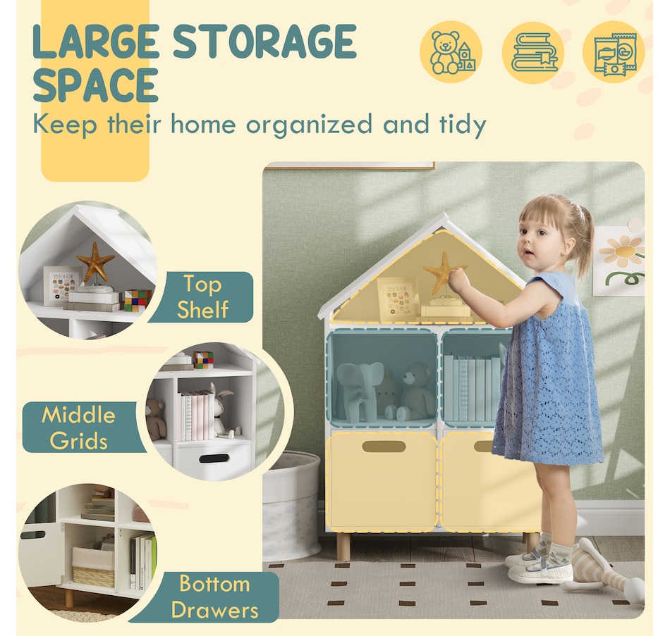 Discover the charm of Qaba's 3-tier book shelf for children, where lots of storage meets delightful design. Crafted from robust MDF and featuring a house-shaped silhouette that complements any room's decor, this kids storage is not just a bookcase but a little home for your child's adventures in reading. This baby book shelf is suitable for bedrooms, playrooms and living areas.Features: