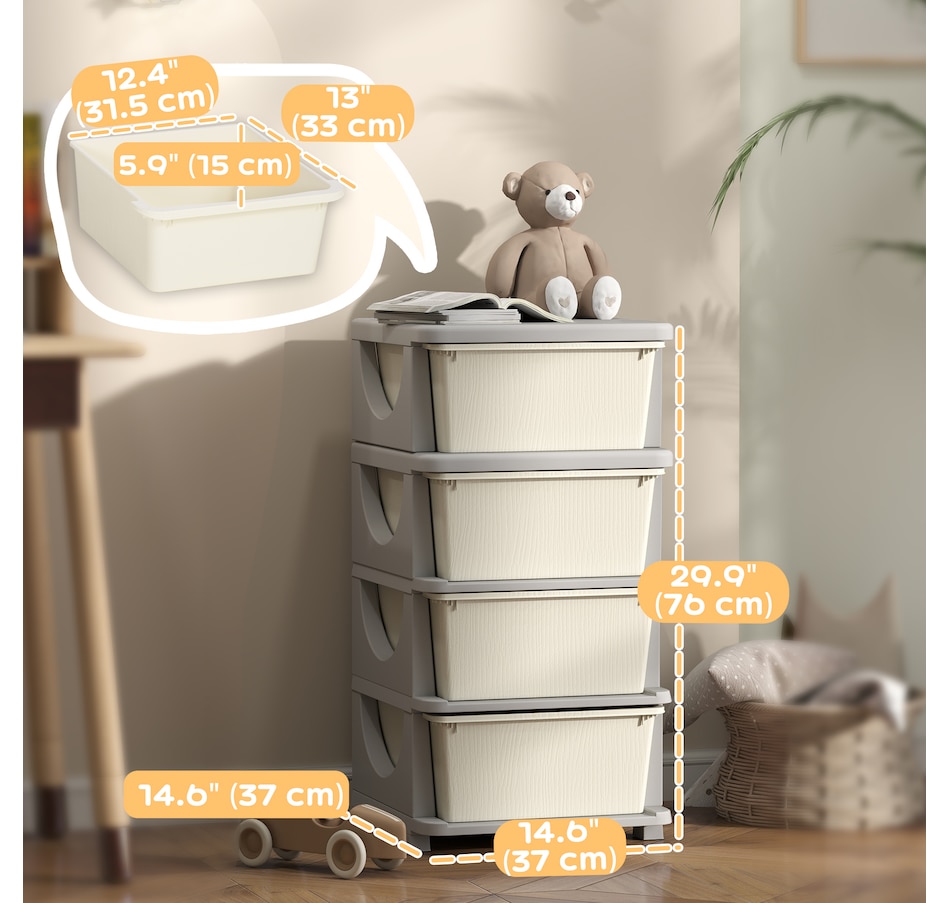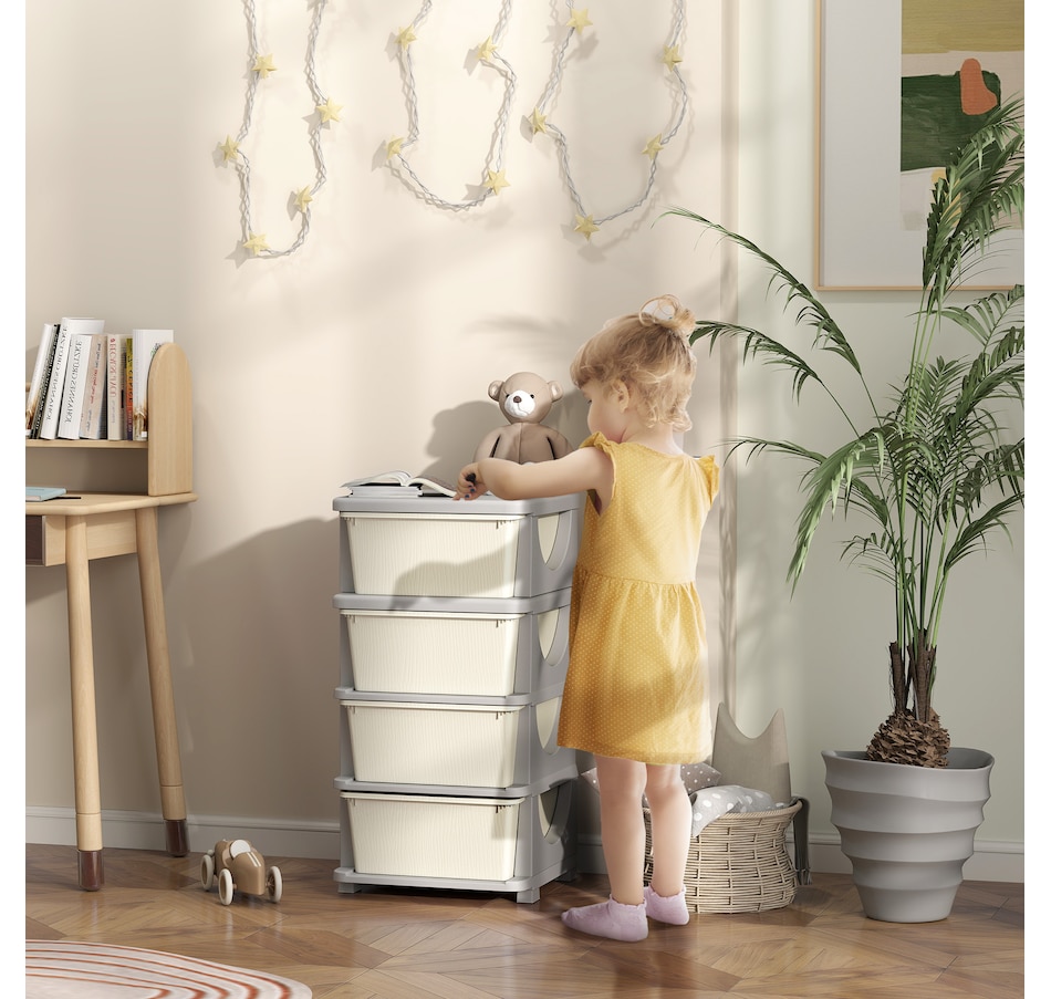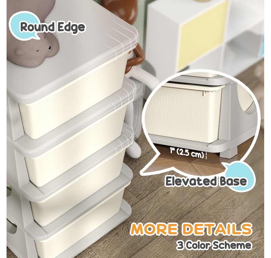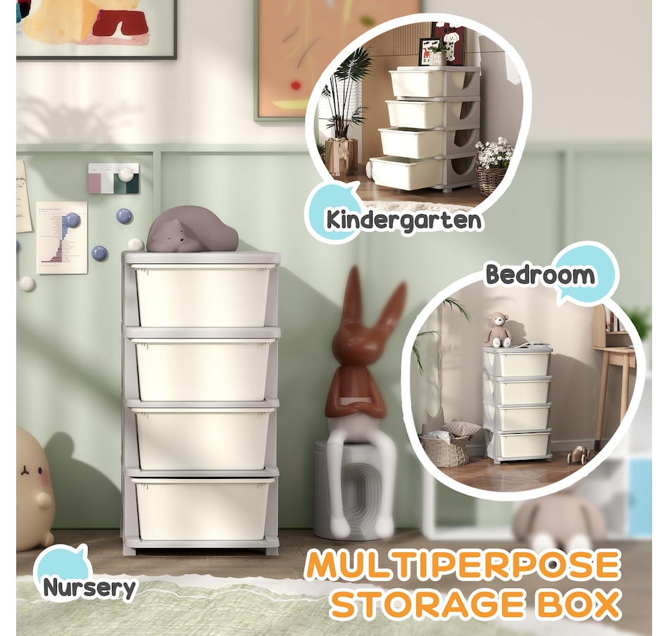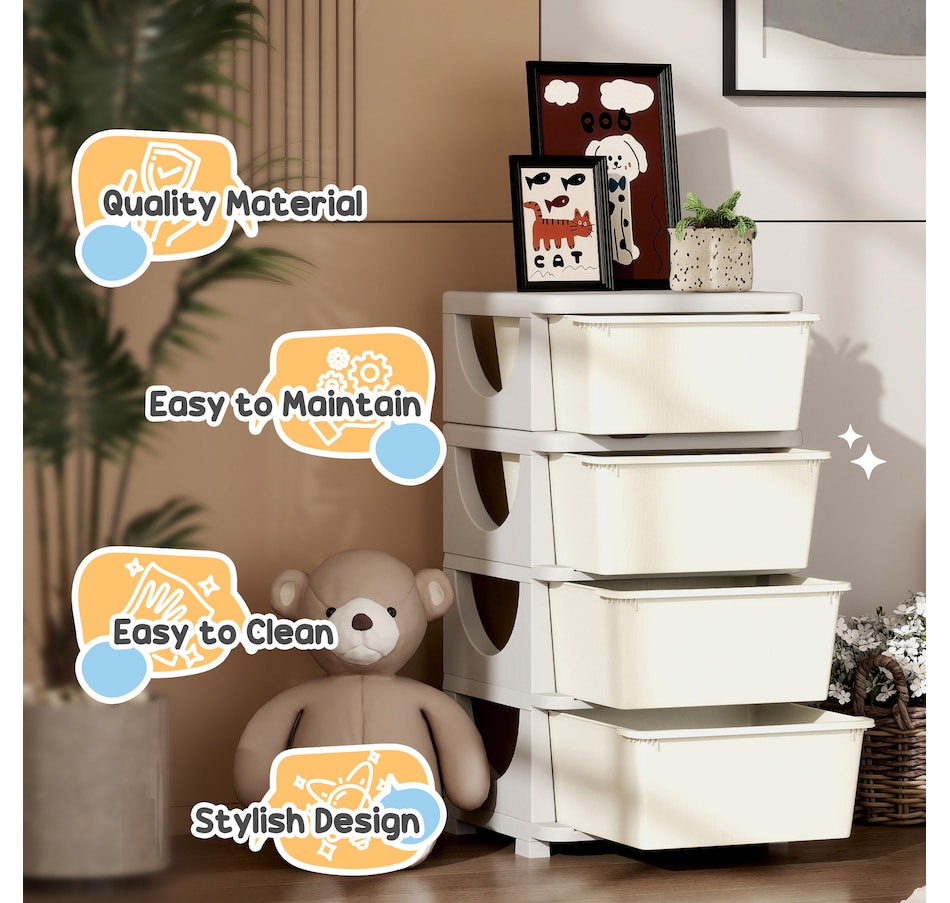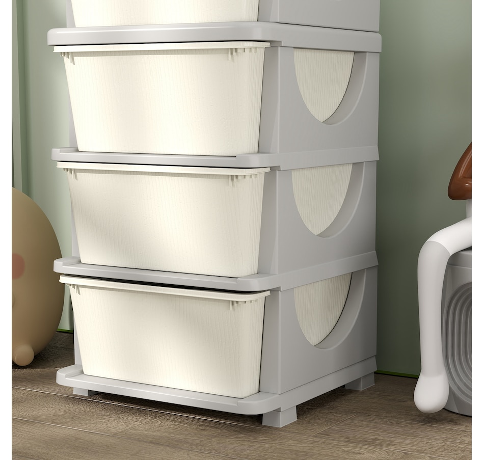Space can be precious, and this minimalistic design toy organizer from Qaba allows homes with limited extra room for furniture to accommodate them. The large removable bins will make items easy to access, so when a kid can't find something, they can search the boxes without having to stick their hand in the back of the drawer where they can't see. These toy organizer and storage bins for kids are made for simplicity, storage, and a smooth, cleanable surface.Features: