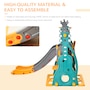 ● 4-in-1 playset with slide, swing, basketball hoop, and ladder;