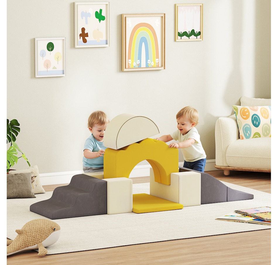 7-Piece Baby Soft Play Set, Foam Climbing Blocks Set, Yellow