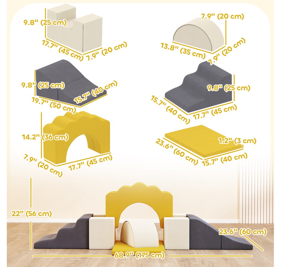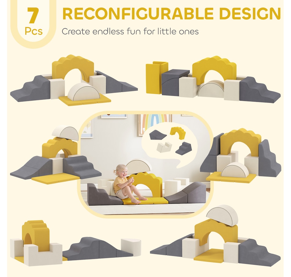 ● Includes 7 shapes for endless climbing, sliding, and building fun;