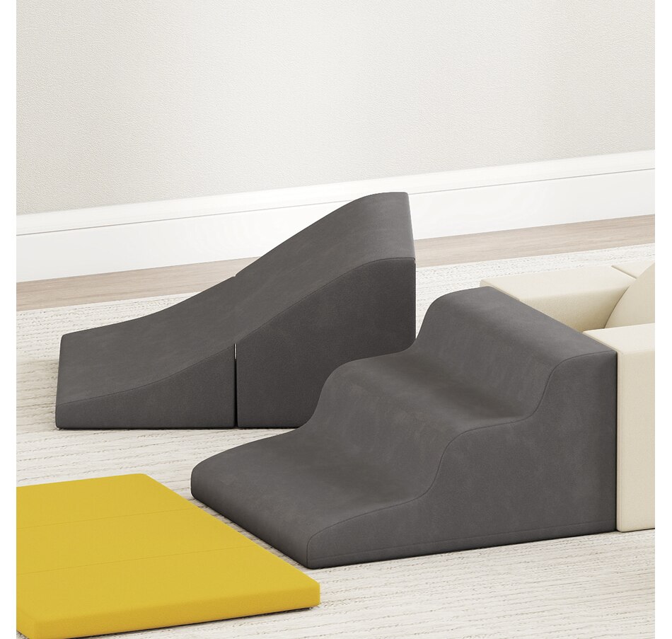 Transform your home into a safe haven for exploration with the Qaba baby climbing blocks. Featuring seven versatile pieces, including ramps and arches, it sparks creativity and physical growth for toddlers. Crafted with velvet and high-density foam, it provides comfort and safety, eliminating sharp edges. The removable cover simplifies cleaning, letting parents focus on joyful moments while maintaining a hygienic play space.