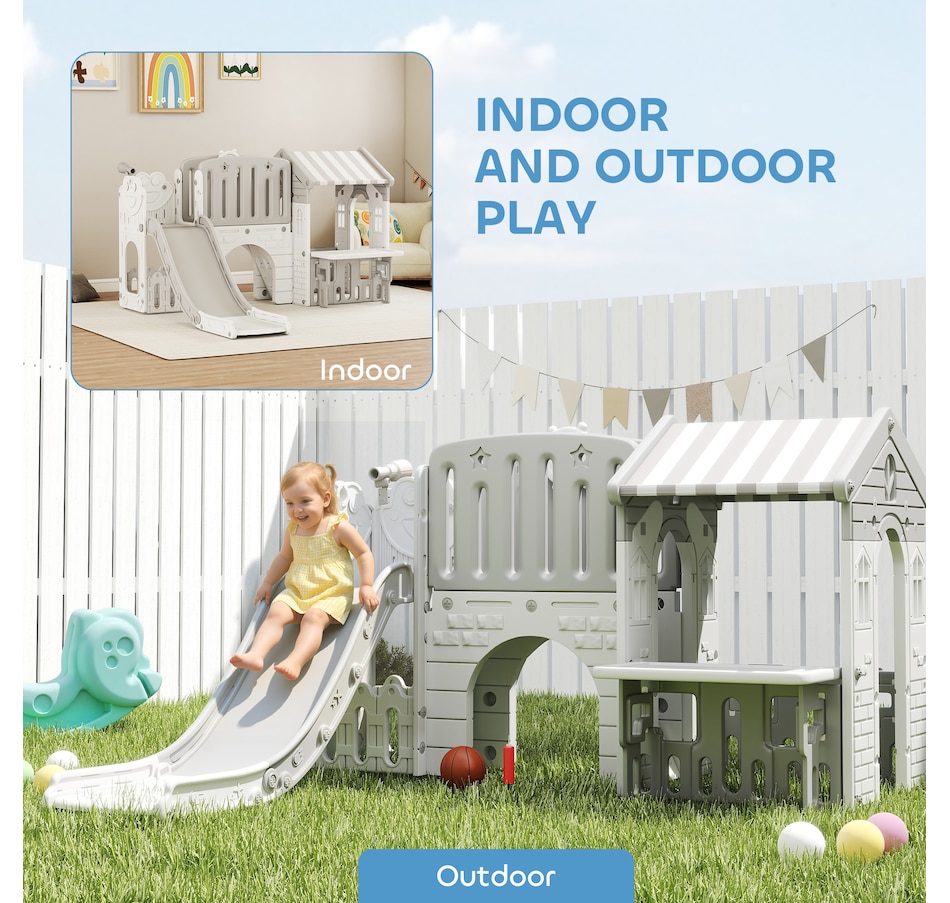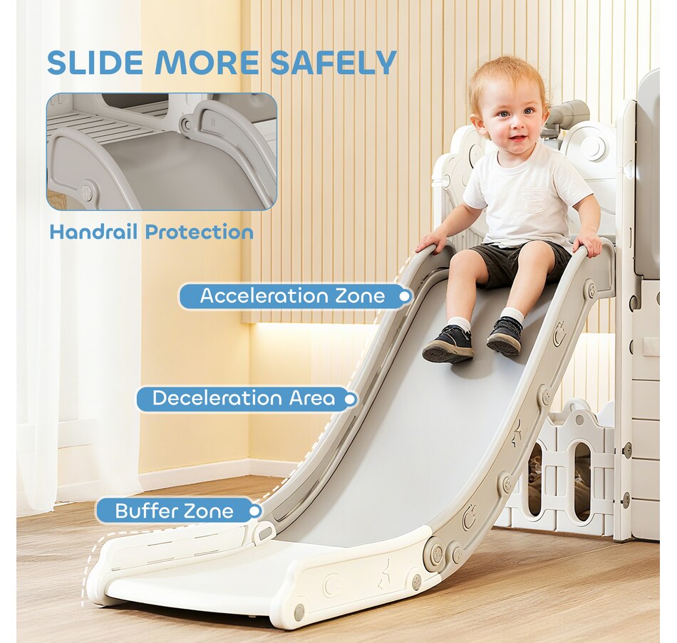 If you're looking for a safe and exciting way for your toddler to play indoors, imagine the joy of having a private playground right in your living room. The Qaba kids slide features a widened baby slide and robust, smooth construction for your peace of mind. This seven-in-one toddler indoor slide transforms any space into a creative hideout, offering endless adventures from the playhouse to the drawing board, joyful and secure fun.Features: